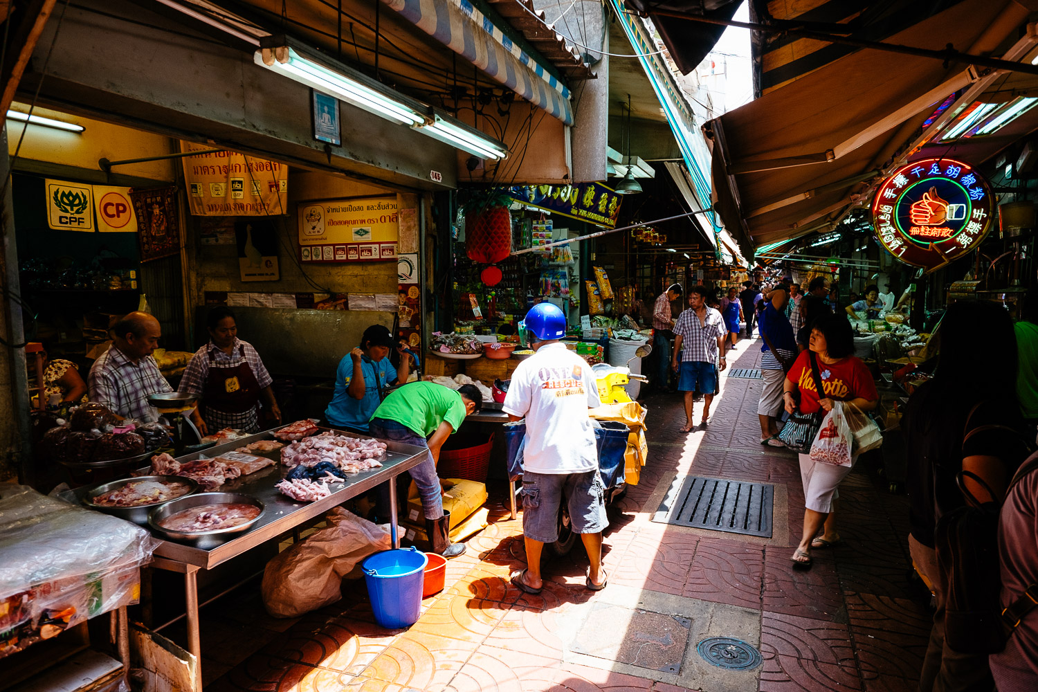 And I will go there either in the morning or late afternoon. The light is not the problem but the place is very quiet around lunch time. This little market is still one of my favourite places in Bangkok. This is real Chinatown. You can’t find fridge magnets and other stuff for tourists here but you can get dried fish stomach, fish skin, live frogs and snakes and a lot more to enlarge your food horizon. I have not found maggots and grasshoppers here but I’m sure they are sold here as well somewhere. Or some fried flowers for the vegans.