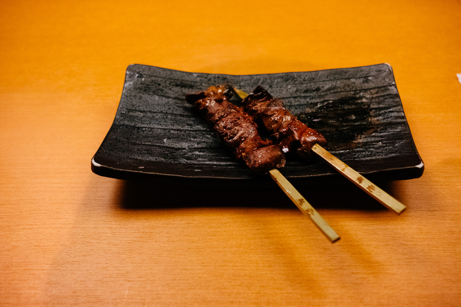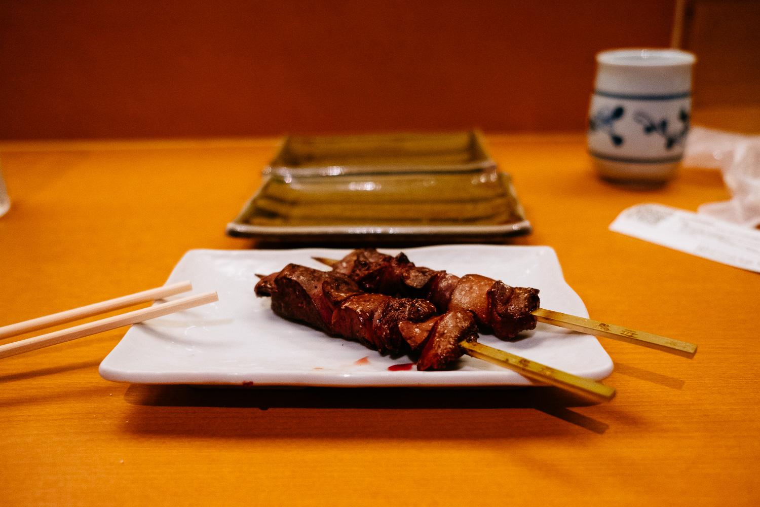Liver, heart, small intestines, chicken gizzard, cartilage, chicken skin, ovary and chicken tail. Of course I had to explore them all but my clear favourites are: liver, chicken skin and the tail. And the liver is perfectly prepared as you can see on the small drop of blood on the plate in the last picture.