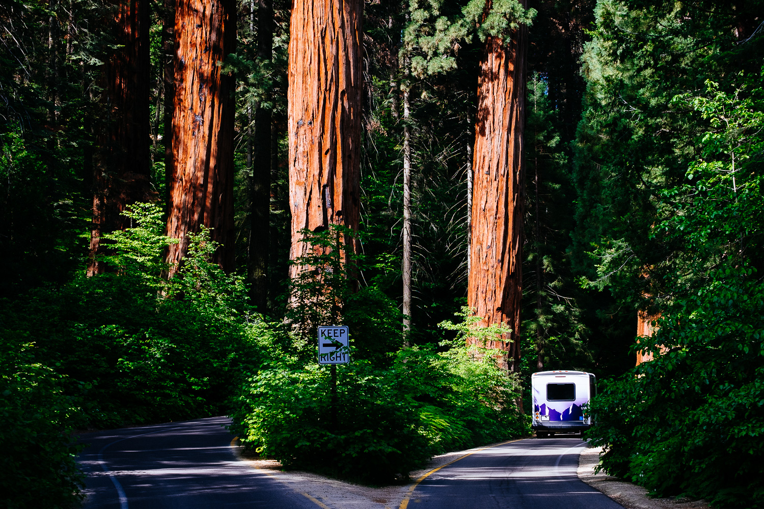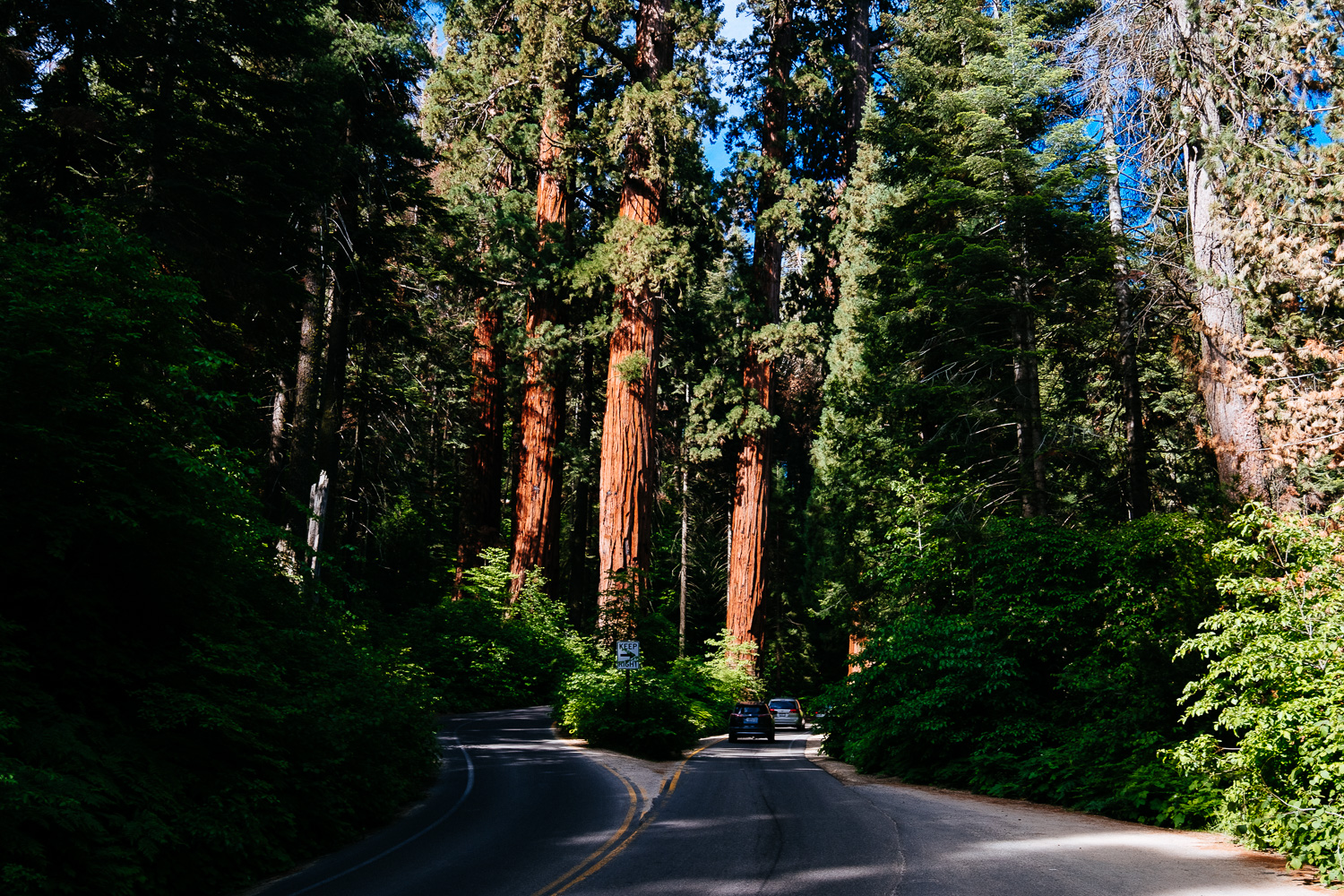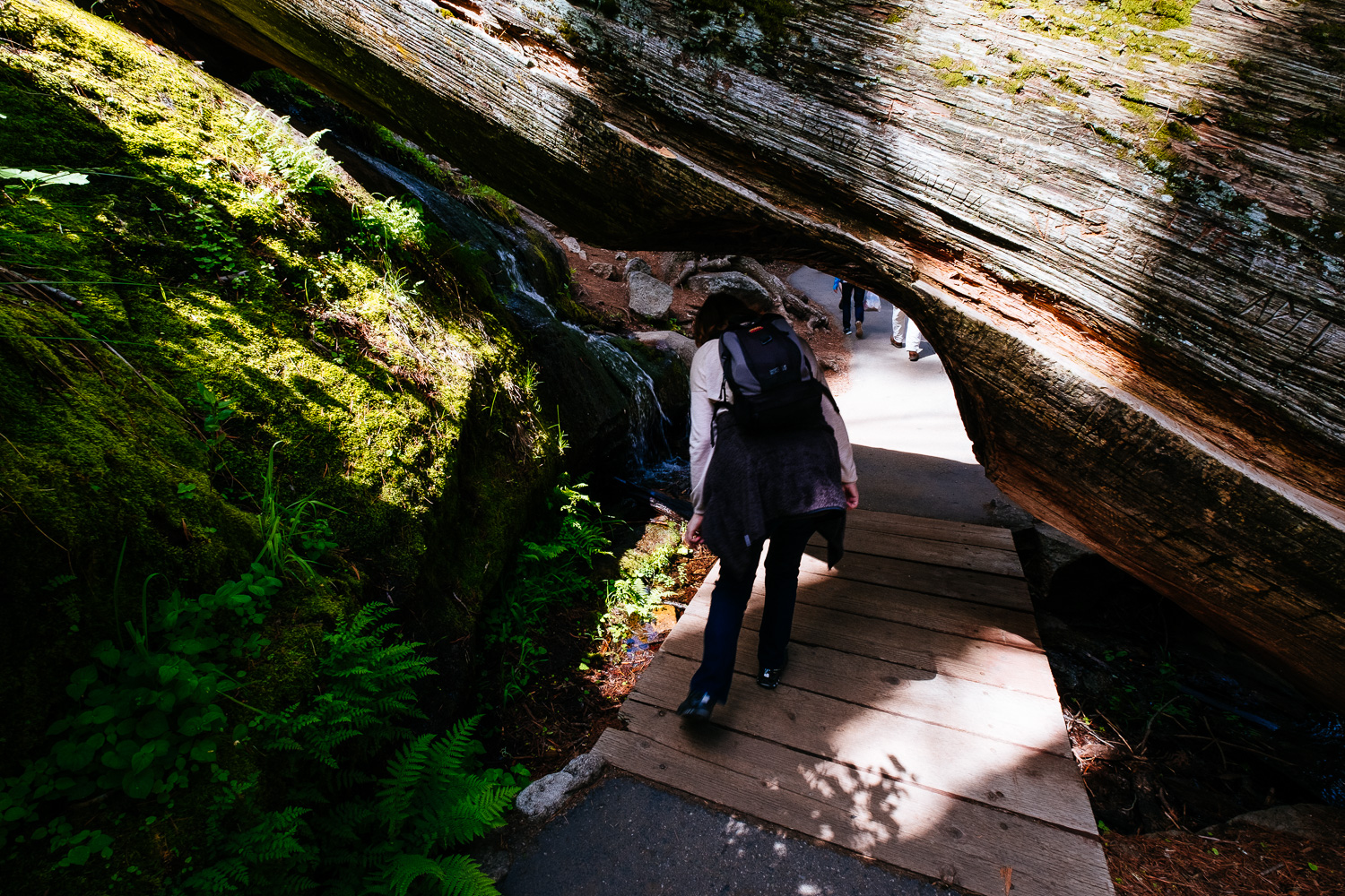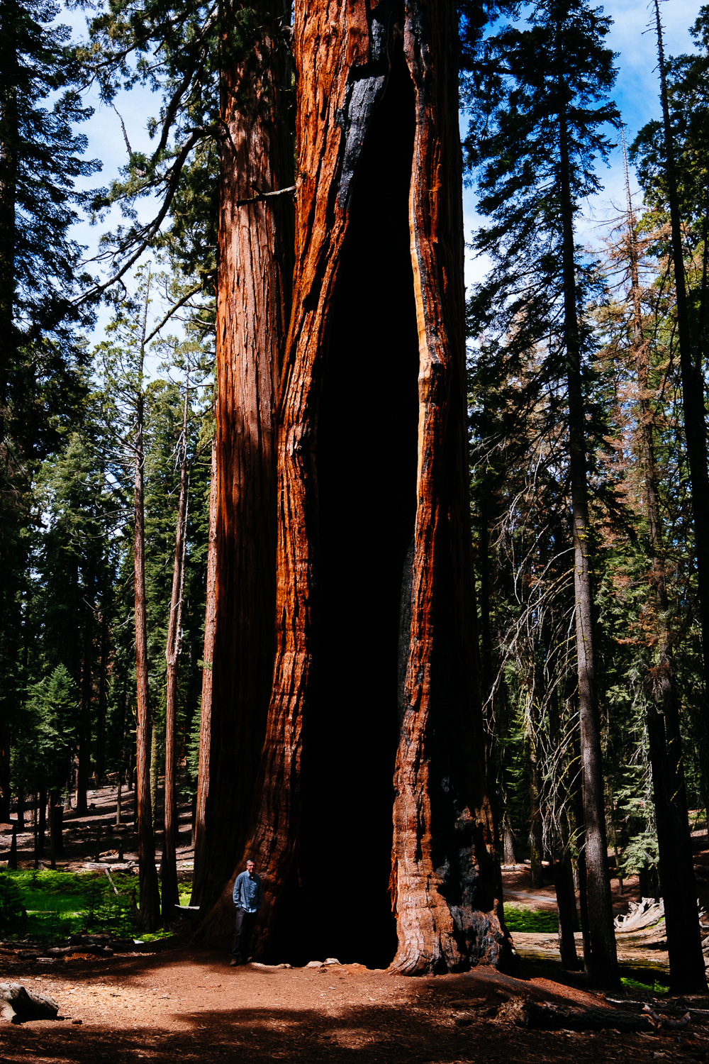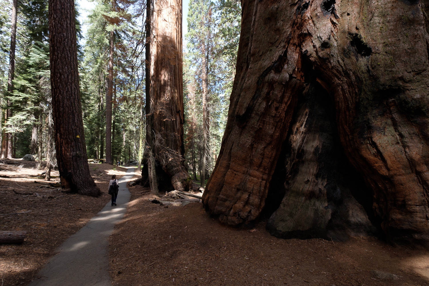 Talking about sense of scale. The shot above is my favourite of the day. The bright dot next to the Sequoia tree in the back is my wife. That plus the normal trees in the background really show how big those giant trees are. They are truly immense and it’s something you should experience yourself. I strongly recommend to visit this beautiful forest.