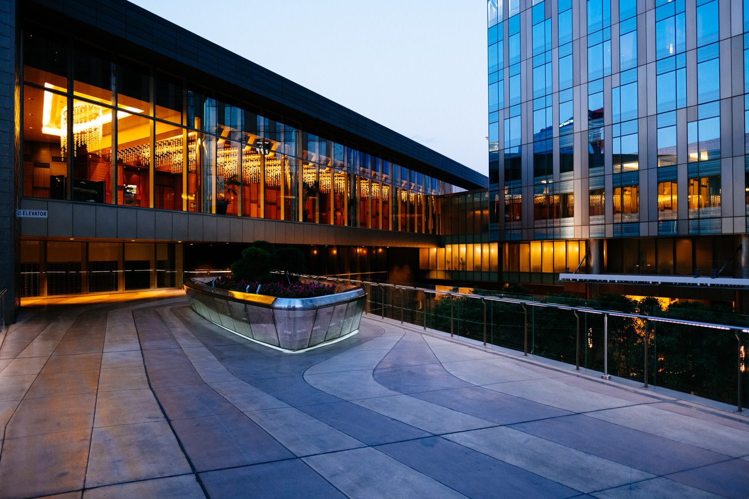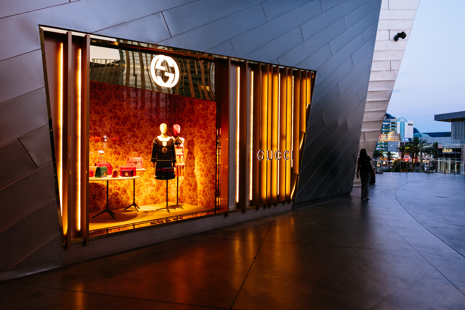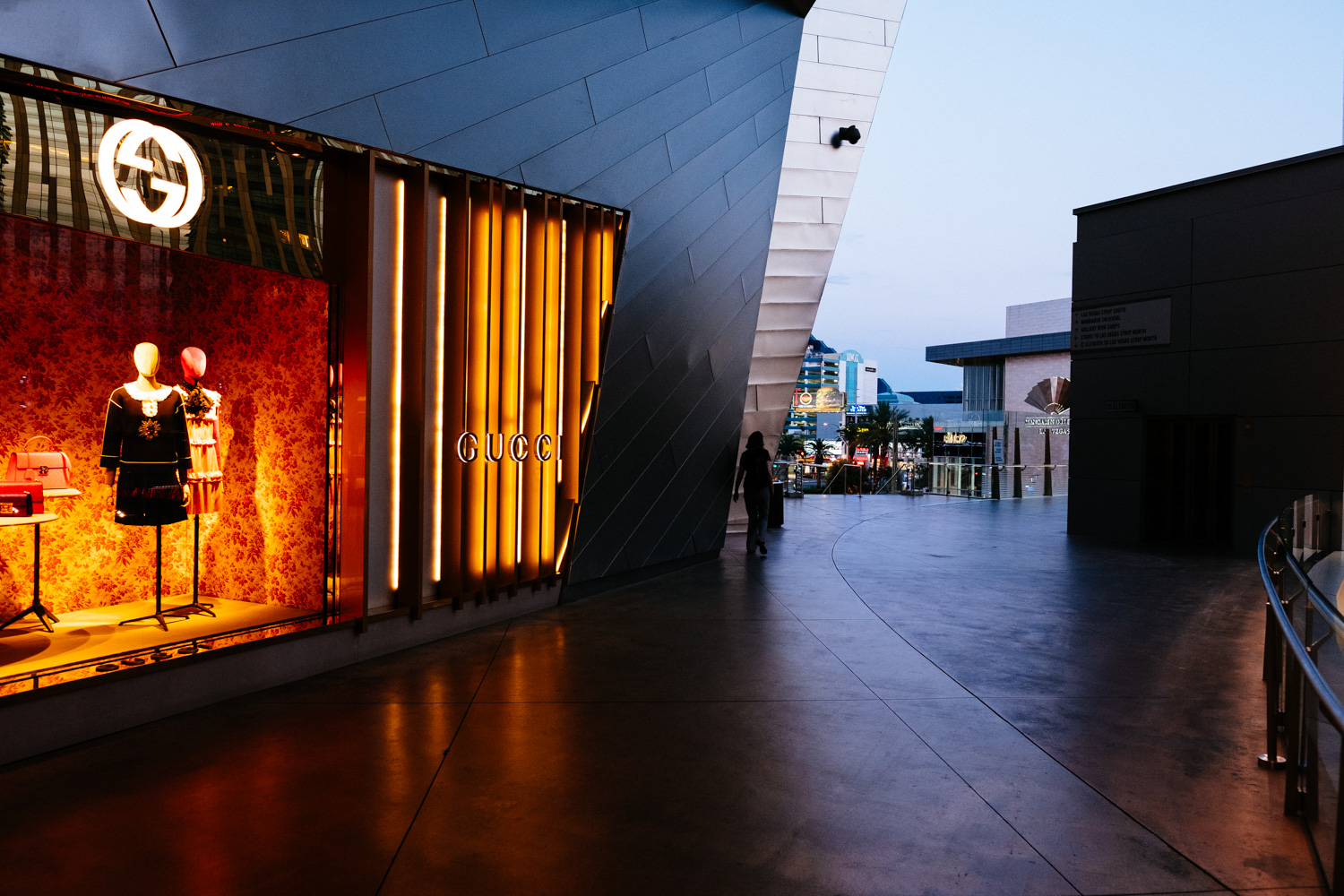 I still shot everything with the XF16/1.4WR and focused on the architectural details around the City Center. It was such a beautiful mix of shiny metal, yellow, orange and red tones from the shop windows and the blue sky.