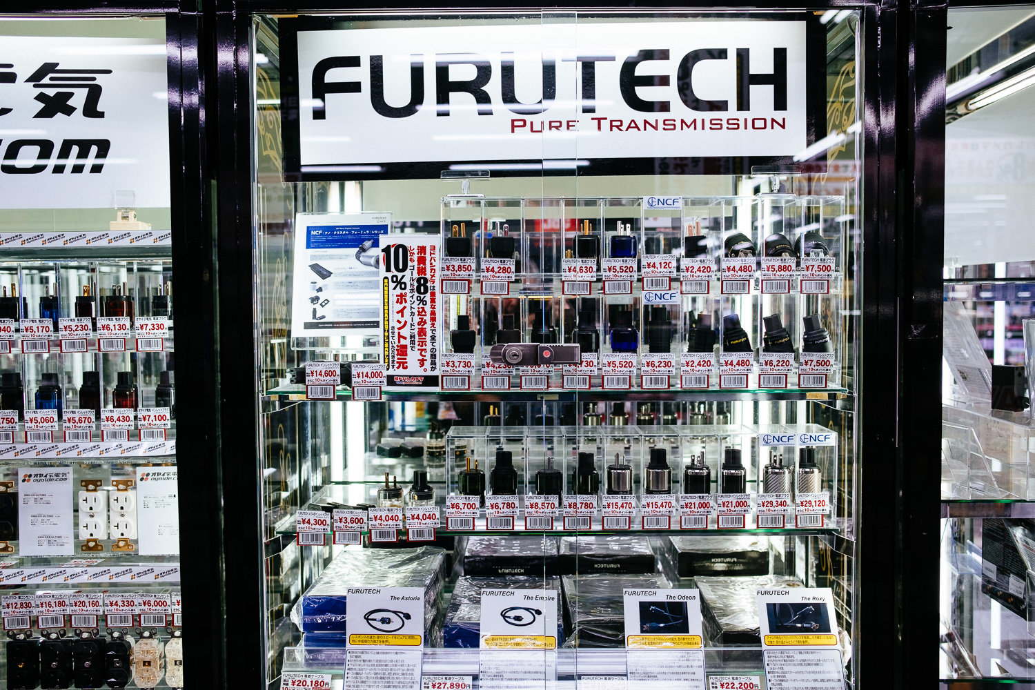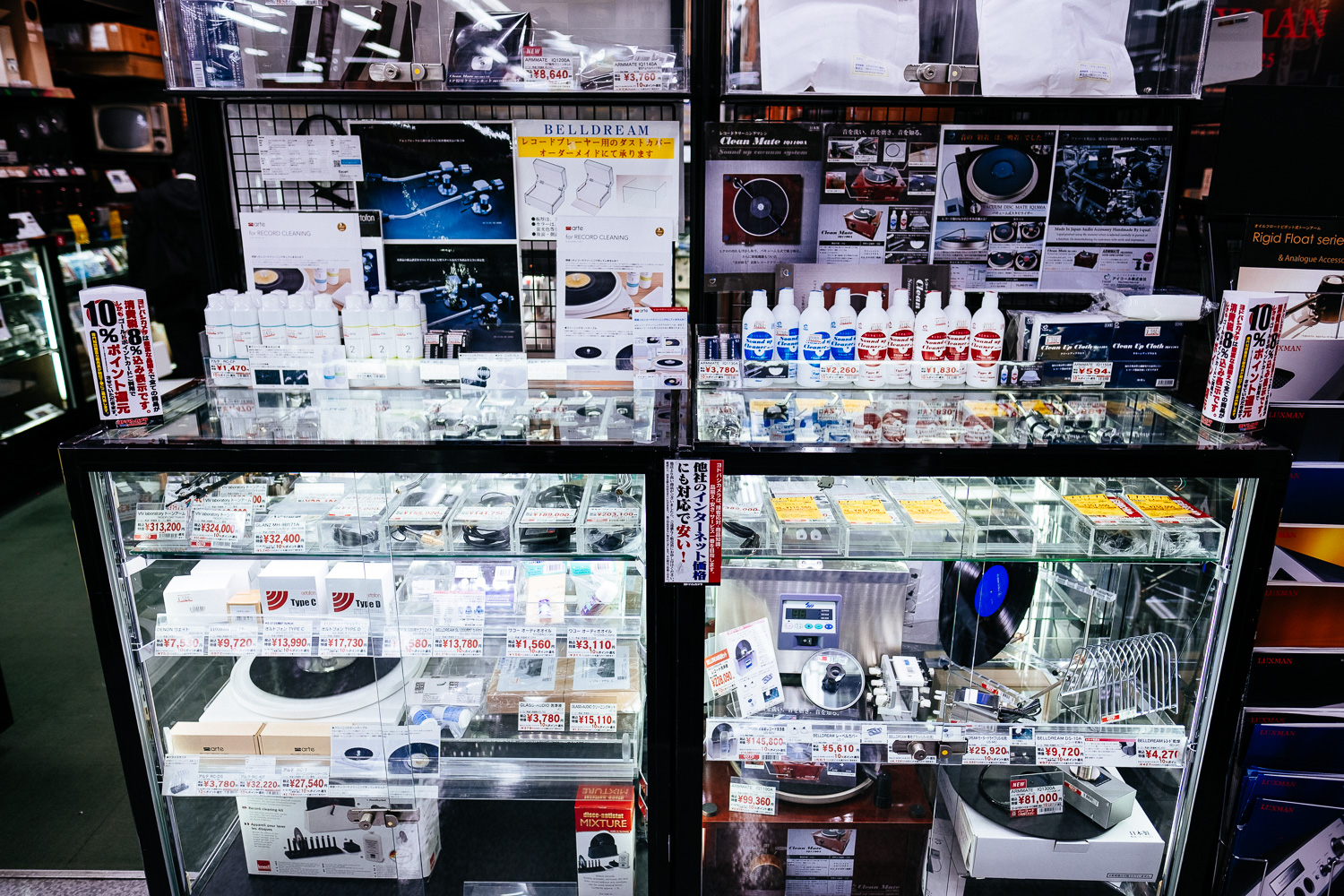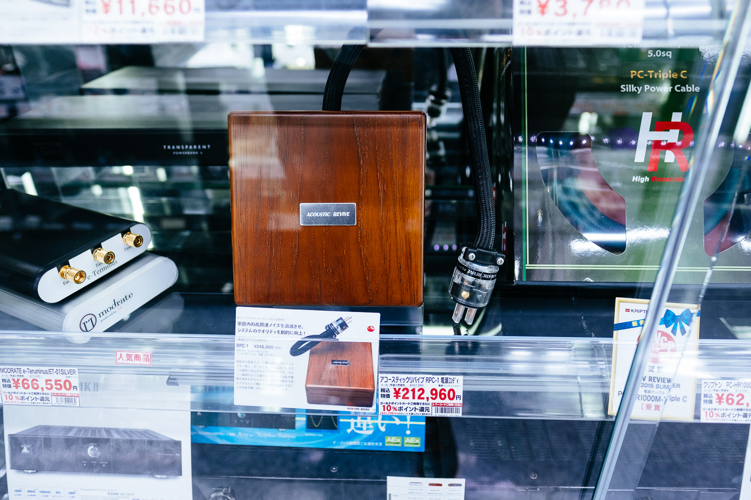 This is thousands of Euros worth of audio equipment literally piled up on every corner. I think that this store alone holds more audio gear than all the hifi stores in Vienna combined but the best part is the accessories section. Japanese love to optimise their audio gear and that’s why the have showcases filled with tubes, pick ups, tonearms, cables, plugs, purifiers, filters, demagnetisers and wonder liquids.
