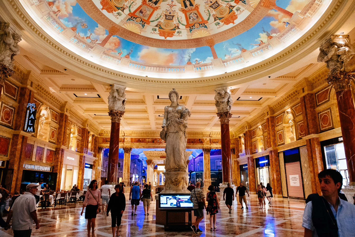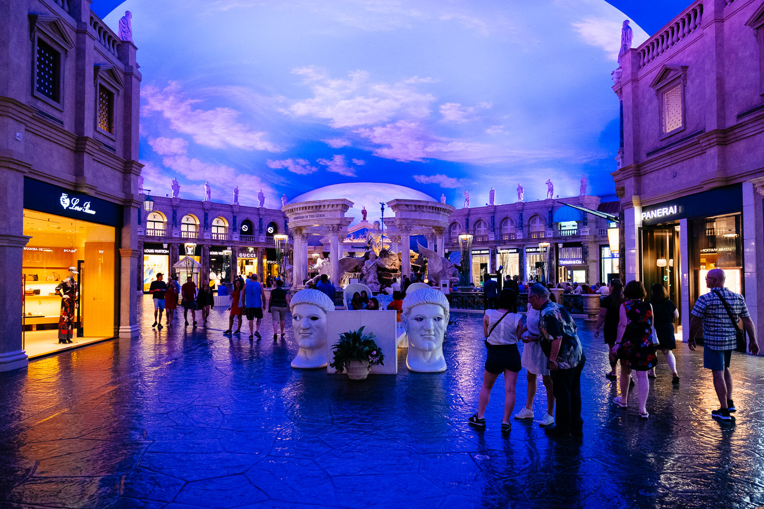 The Caesars Palace is one of the older hotels on the strip and it is my favourite. I love the design of the forum shops and restaurants. Especially the way they simulate sunsets and the blue hour. I never bought anything here because it is only Gucci and Prada but I usually have dinner in one of the restaurants.
