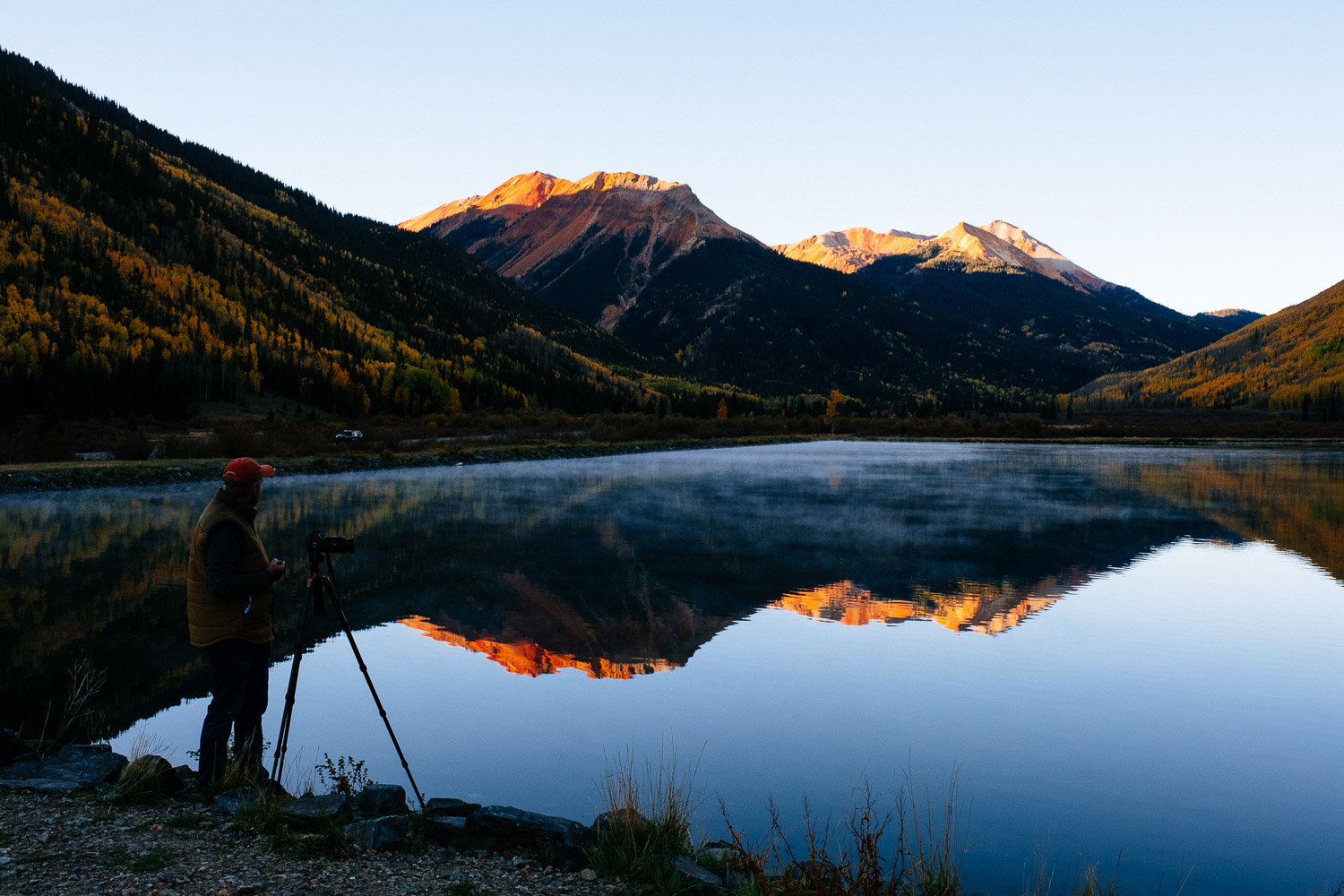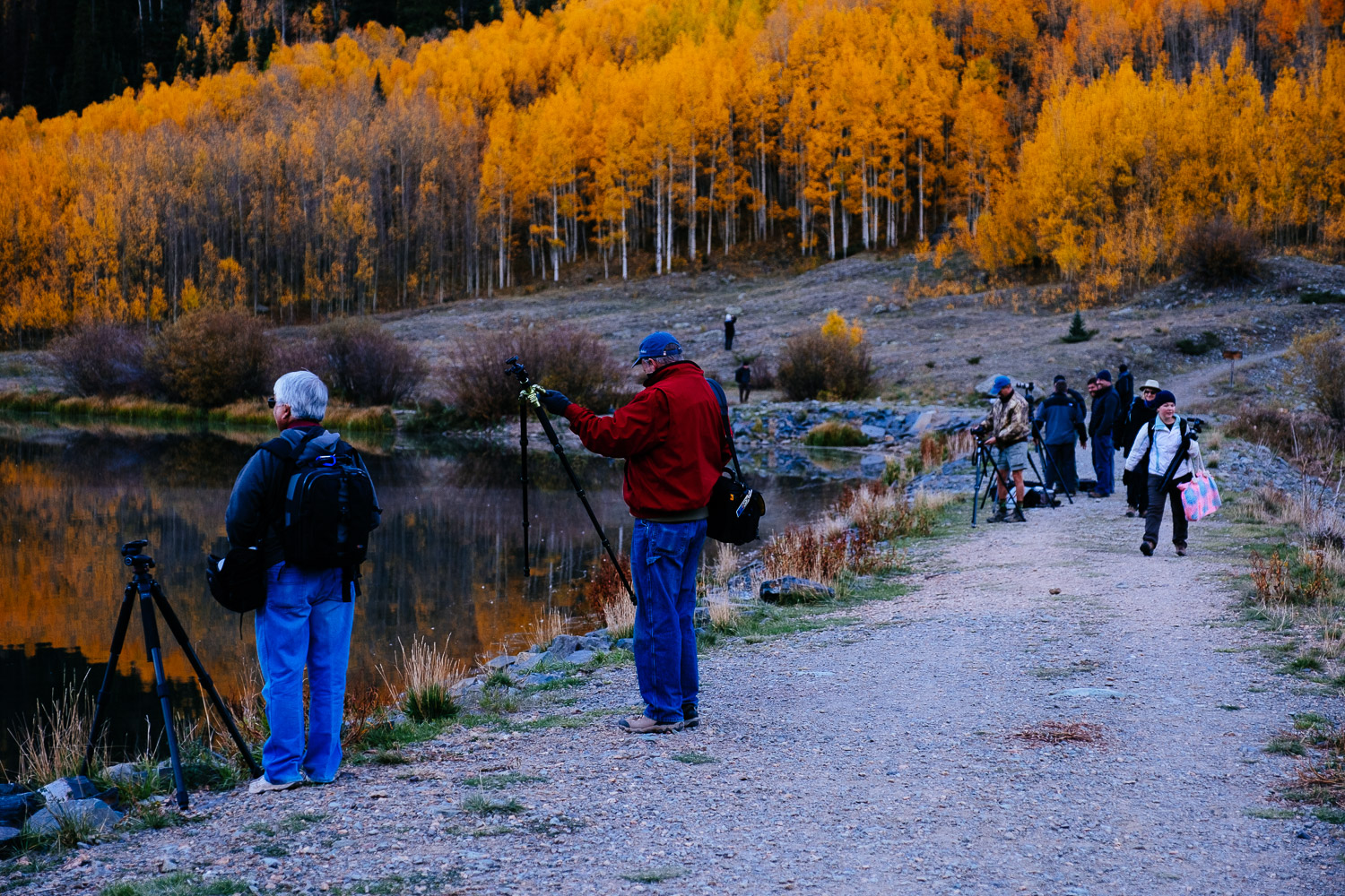 Back to this beautiful morning in Colorado. There was a large group of photographers enjoying their hobby and their gear. I saw many carbon tripods and fancy cameras and lenses. I also saw a group of happy people enjoying the beautiful autumn scenery, enjoying their hobby.