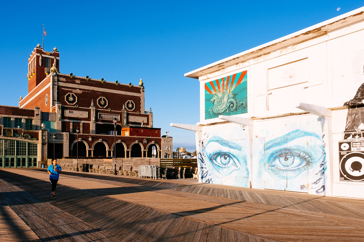 The early morning light was beautiful and there were even less people than the day before. A couple of joggers but otherwise we had the place for ourselves.
