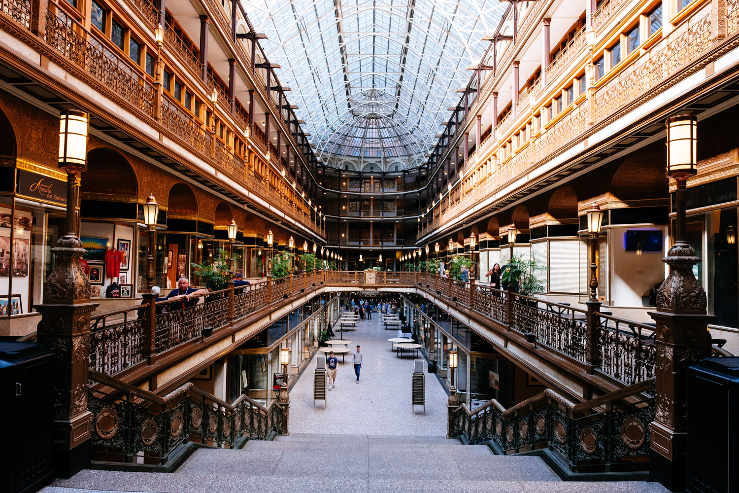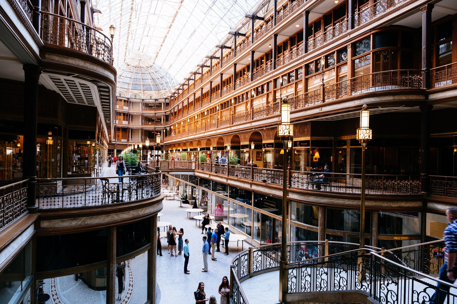 Our hotel was in a fancy old building and there was another one very nearby called The Arcade. A beautiful shopping centre that opened in 1890! Modelled after the Galleria Vittorio Emanuele in Milan, Italy and financed by Mr. Rockefeller. One of the many signs of the glory days when Cleveland was the second biggest location of the US car industry after Detroit.