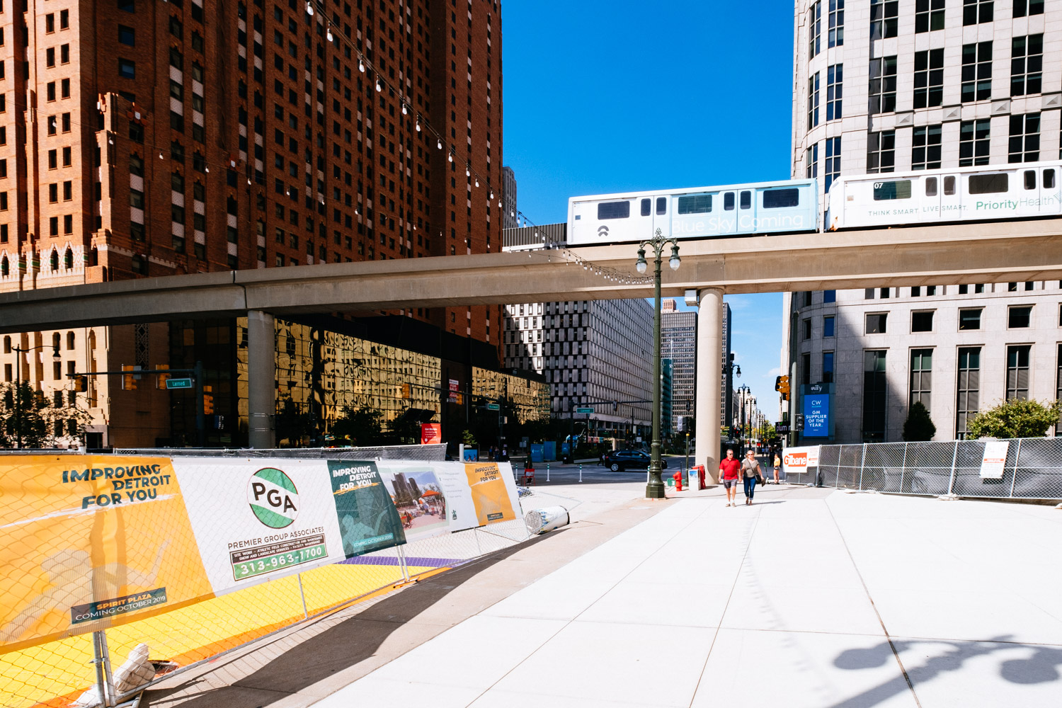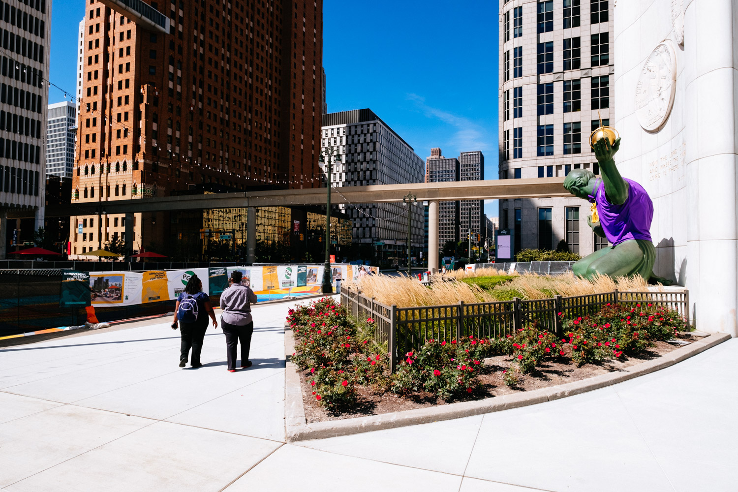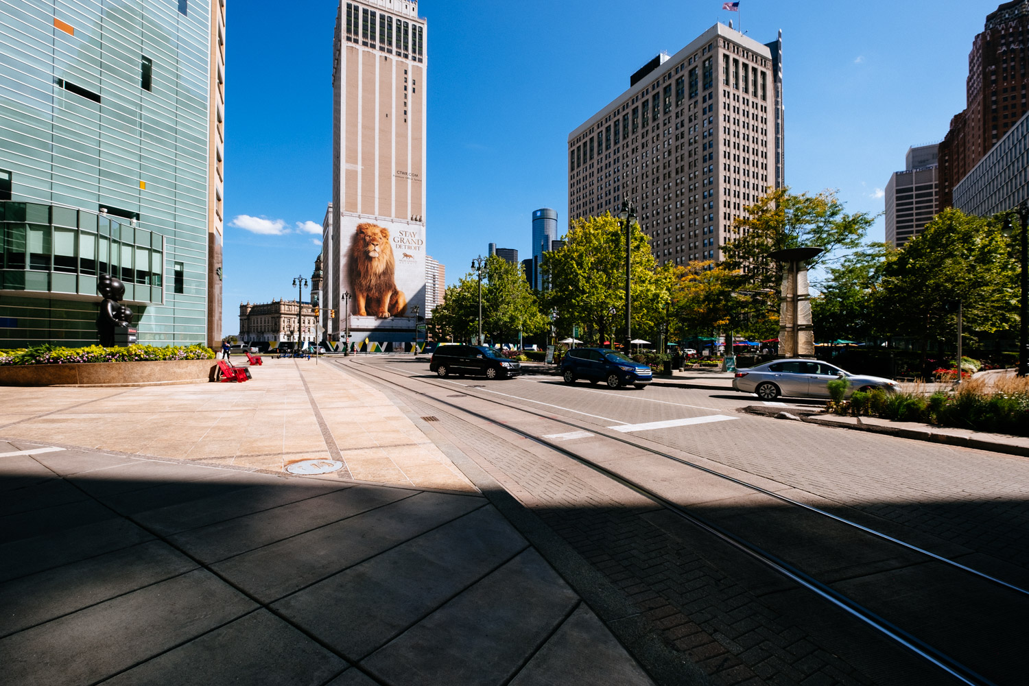 My plan was to drive into the centre and park my car in a public parking lot to at least avoid any issues with the car. I found the big public parking lot next to the GM building (formerly owned by Ford) and left my car there. I walked through the building and entered downtown Detroit by foot.