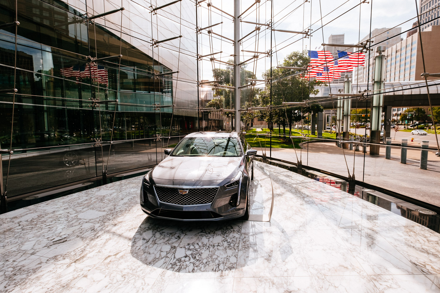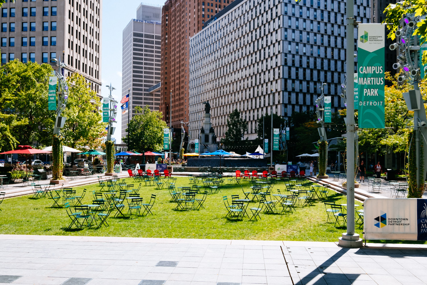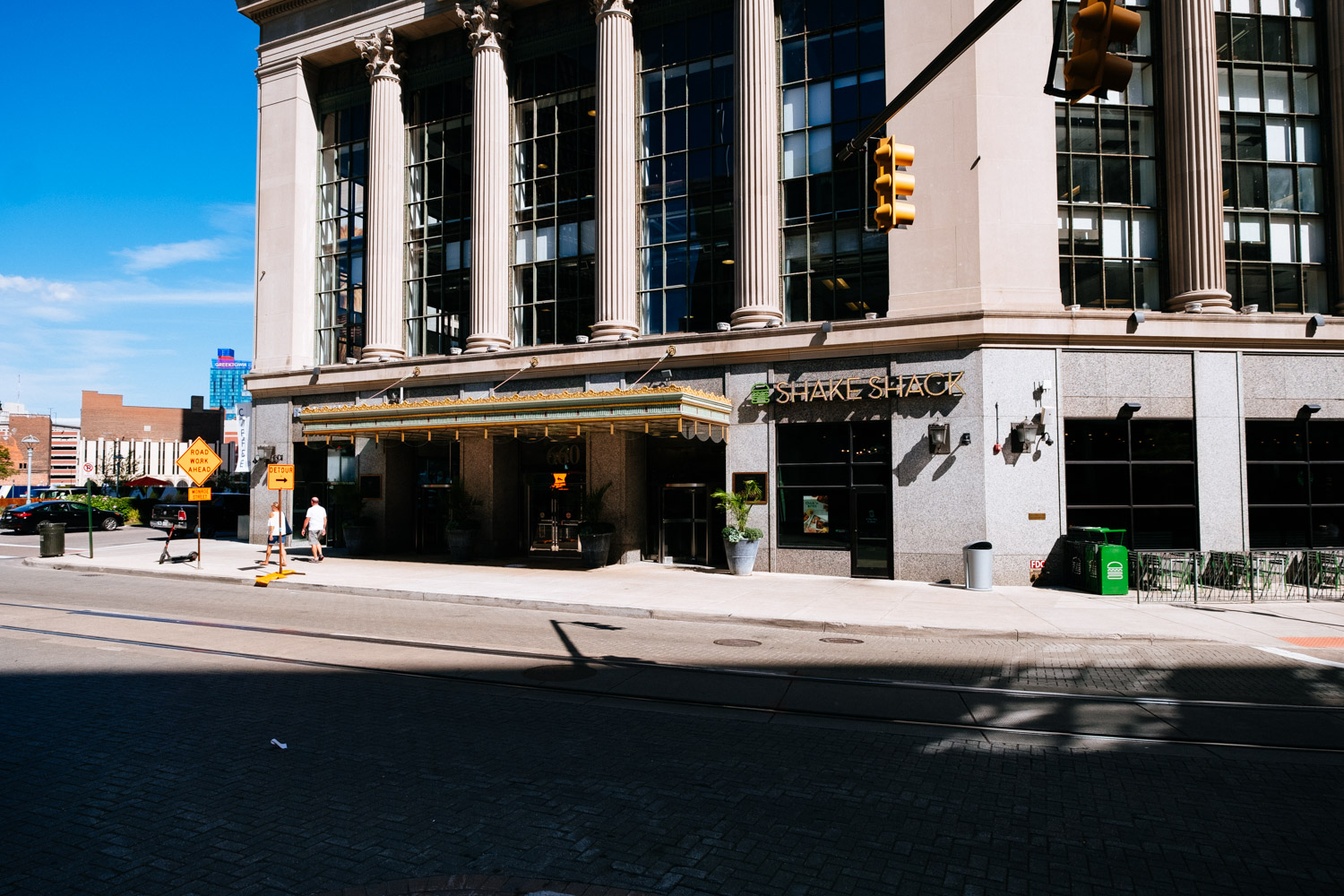 My plan was to drive into the centre and park my car in a public parking lot to at least avoid any issues with the car. I found the big public parking lot next to the GM building (formerly owned by Ford) and left my car there. I walked through the building and entered downtown Detroit by foot.