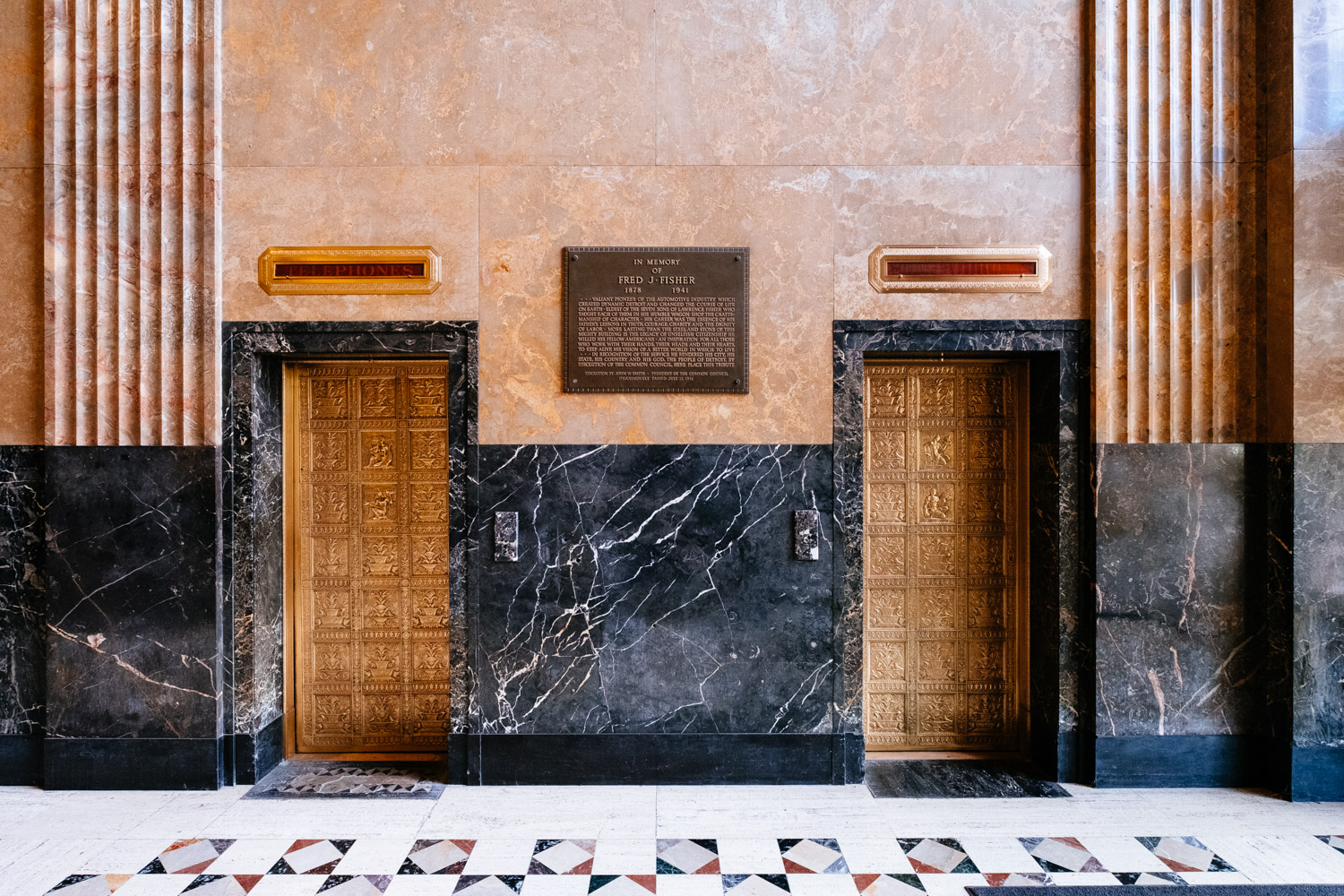 The Fisher building is a true landmark. It is breathtaking! It’s a reminder of the glorious past of Detroit. Designed by the industrial architect Albert Kahn. He designed Ford’s “The Rouge” factory and many other car factories of Detroit. Most of those buildings are industrial ruins or do no longer exist at all.