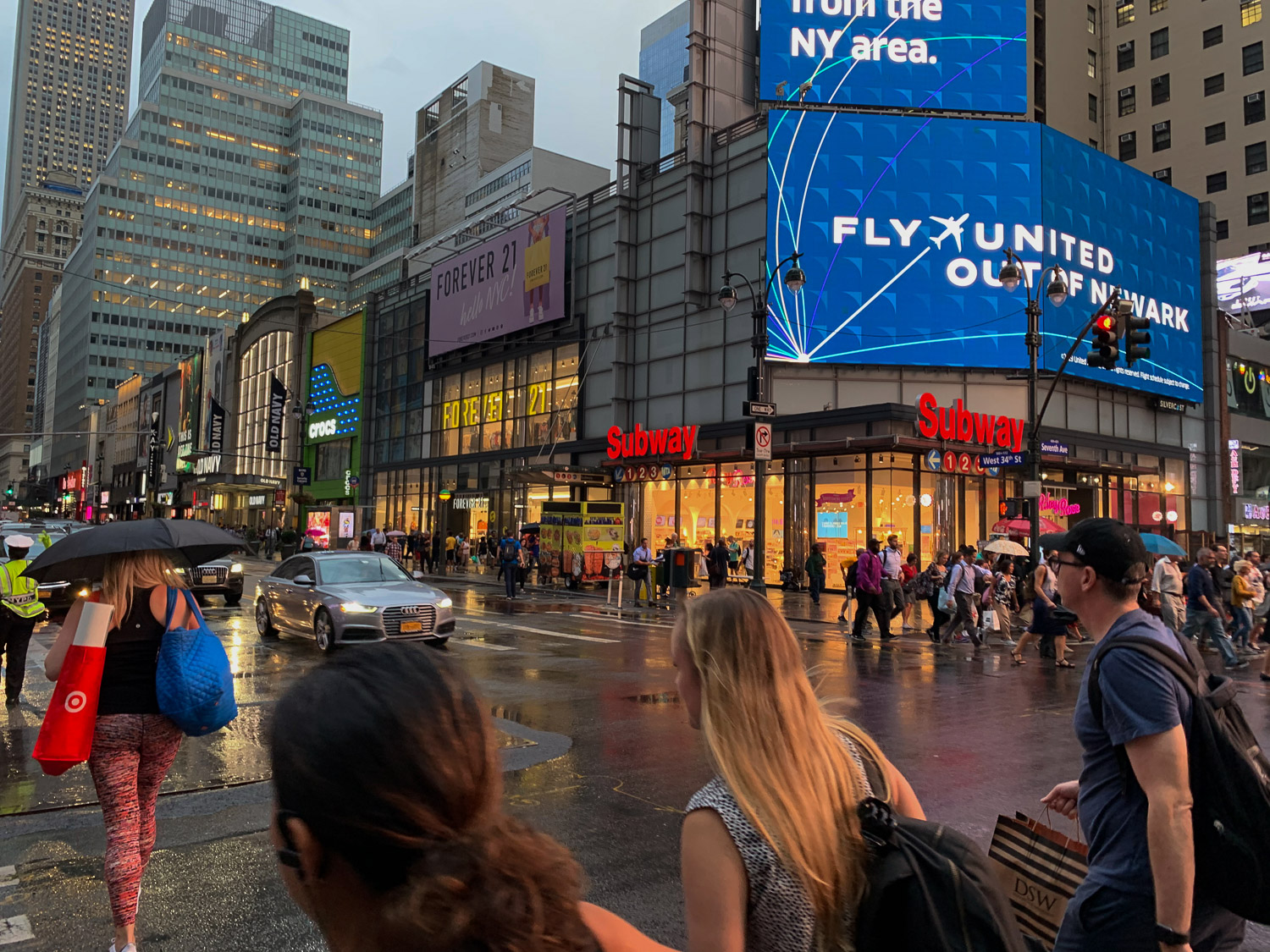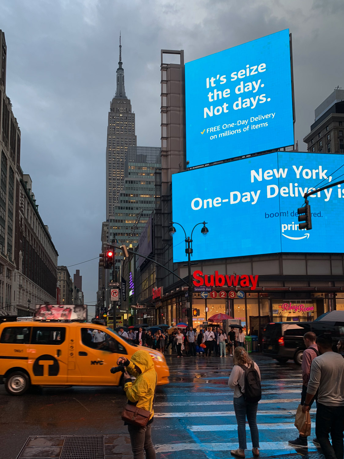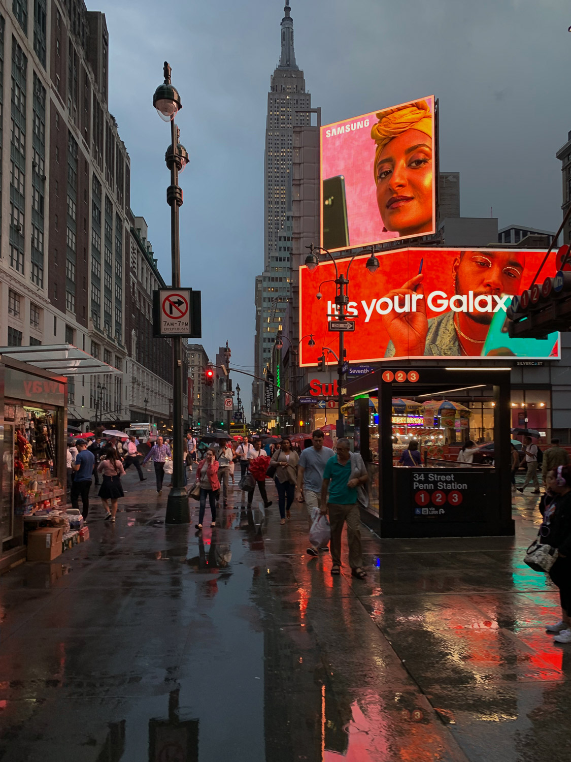 However, the shot below is my favourite. I just love how the wet street reflects the bright red LED screens. The Empire State Building in the back where we had these wonderful views of the city just one day ago. I should have taken those shots with my camera and should have taken more. But that’s happens when you are tired, thirsty and hungry: you make stupid decisions.