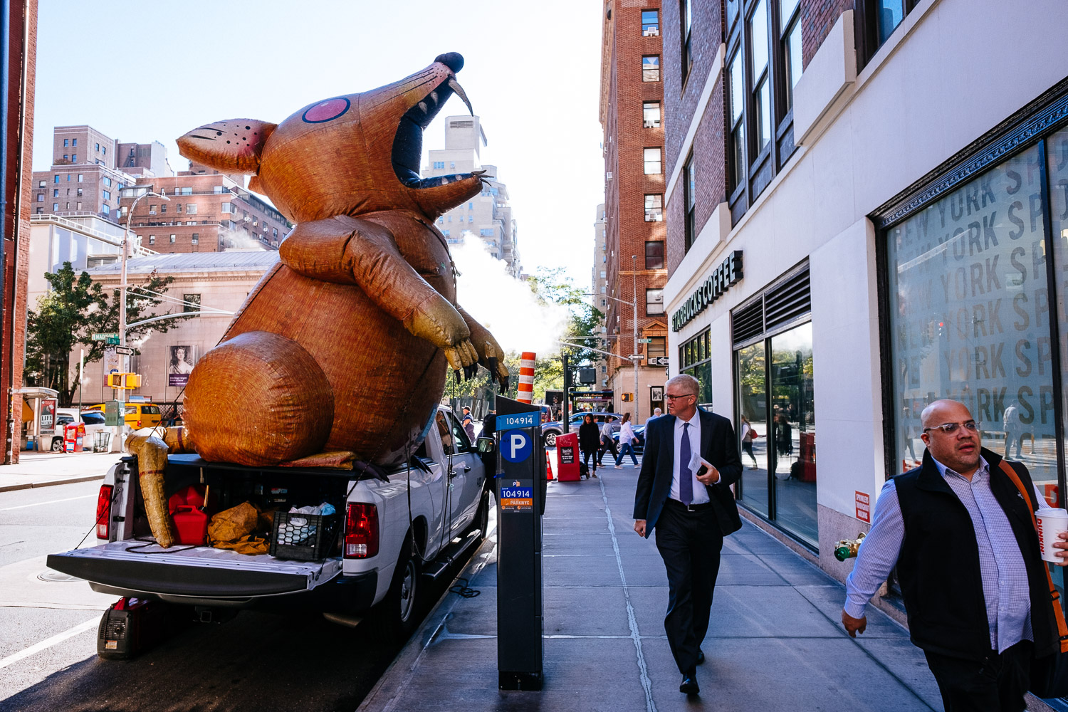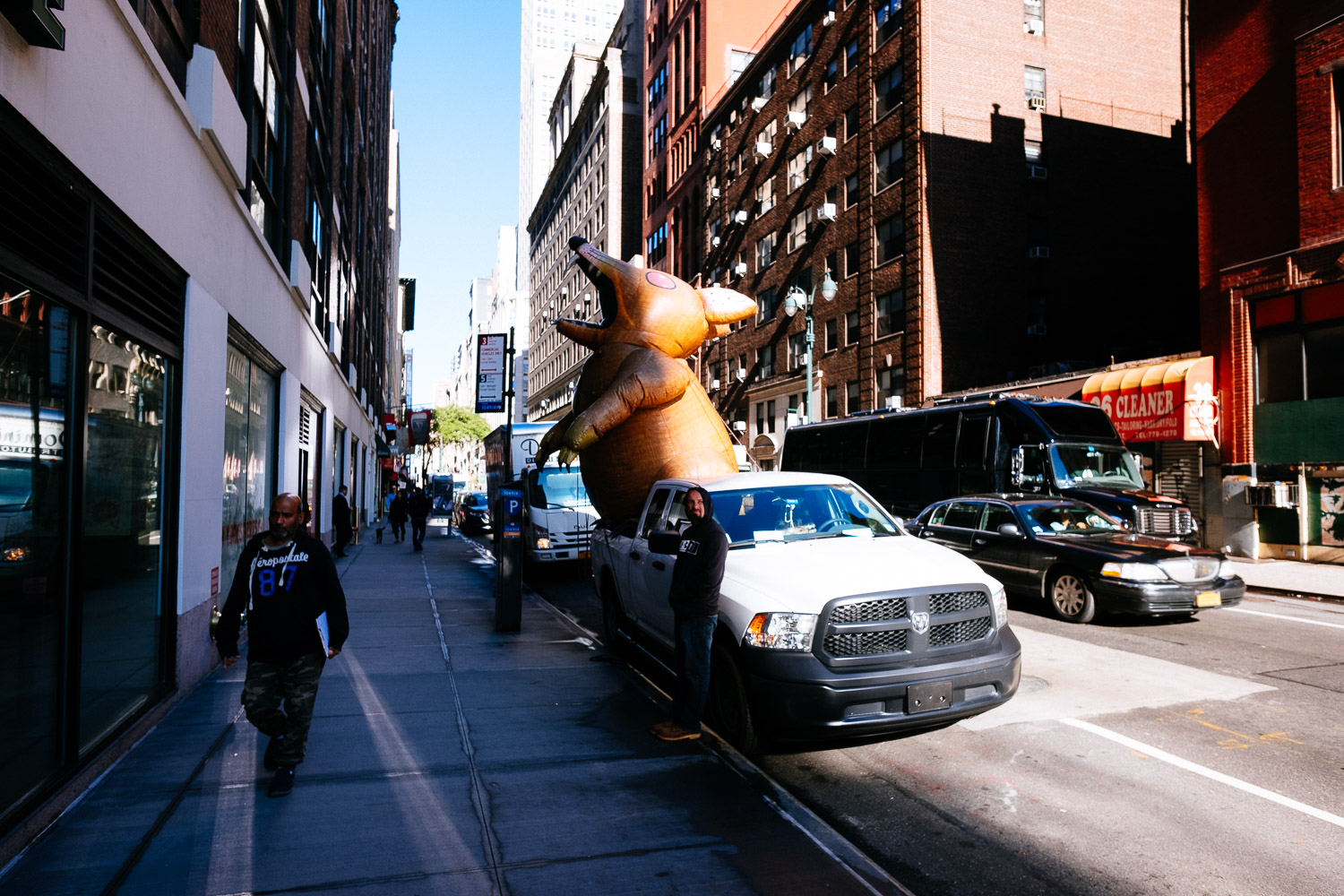 When I reached the block of my hotel the truck with the inflatable rat on its bed was still there. All those lovely little creatures that are lucky enough to live in this beautiful town. According to a study there are 2 million rats in New York City. Imagine that! 2 million rats! That would be a hell of a picture!