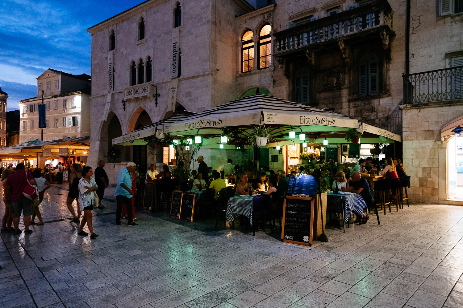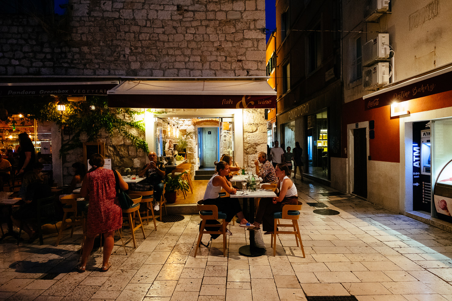 It was the first time since my trip to Japan in February 2020 that I saw so many people at one place. It was already busy during the day but it got even more in the evening when the people returned to the narrow alleys of Split from their hotel rooms or their yachts.