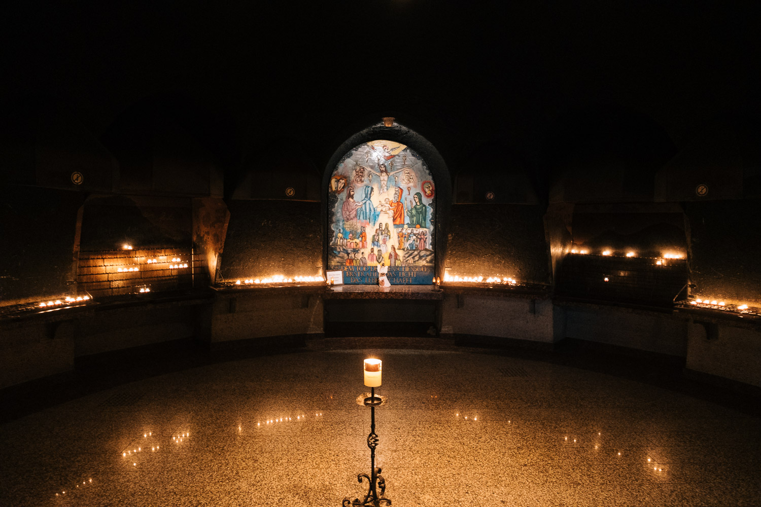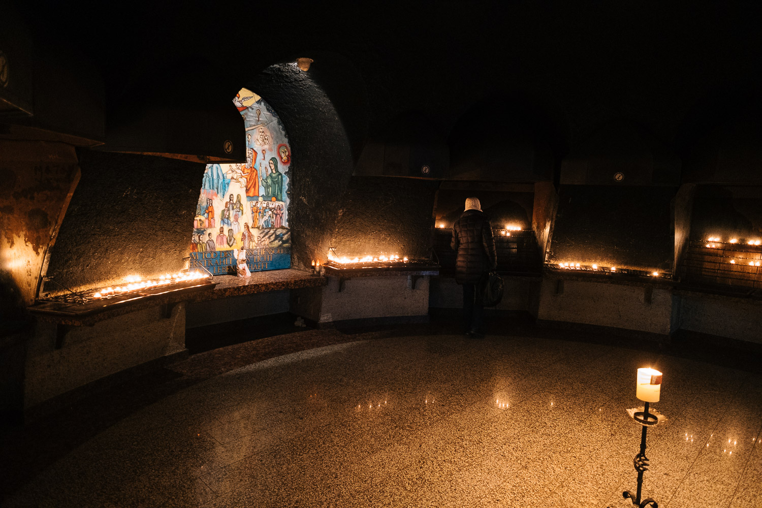 There is a small place outside the basilica. It is a grotto where you can lit a candle for someone. The grotto was built because the smoke of the candles caused damage to the art work in the basilica. This is where we went next.