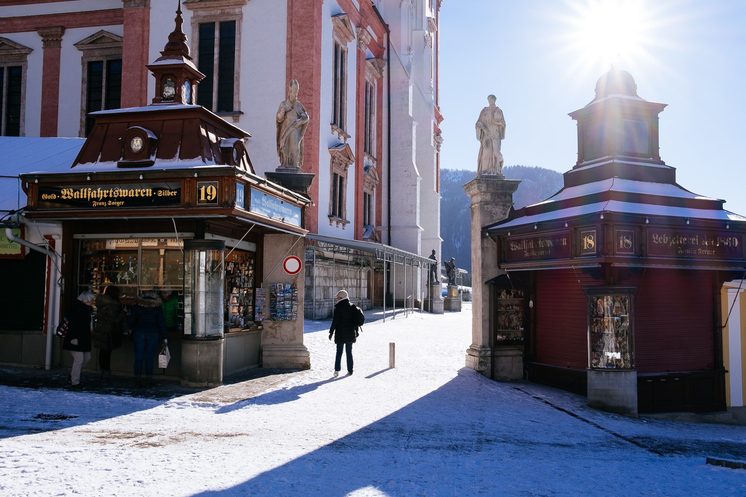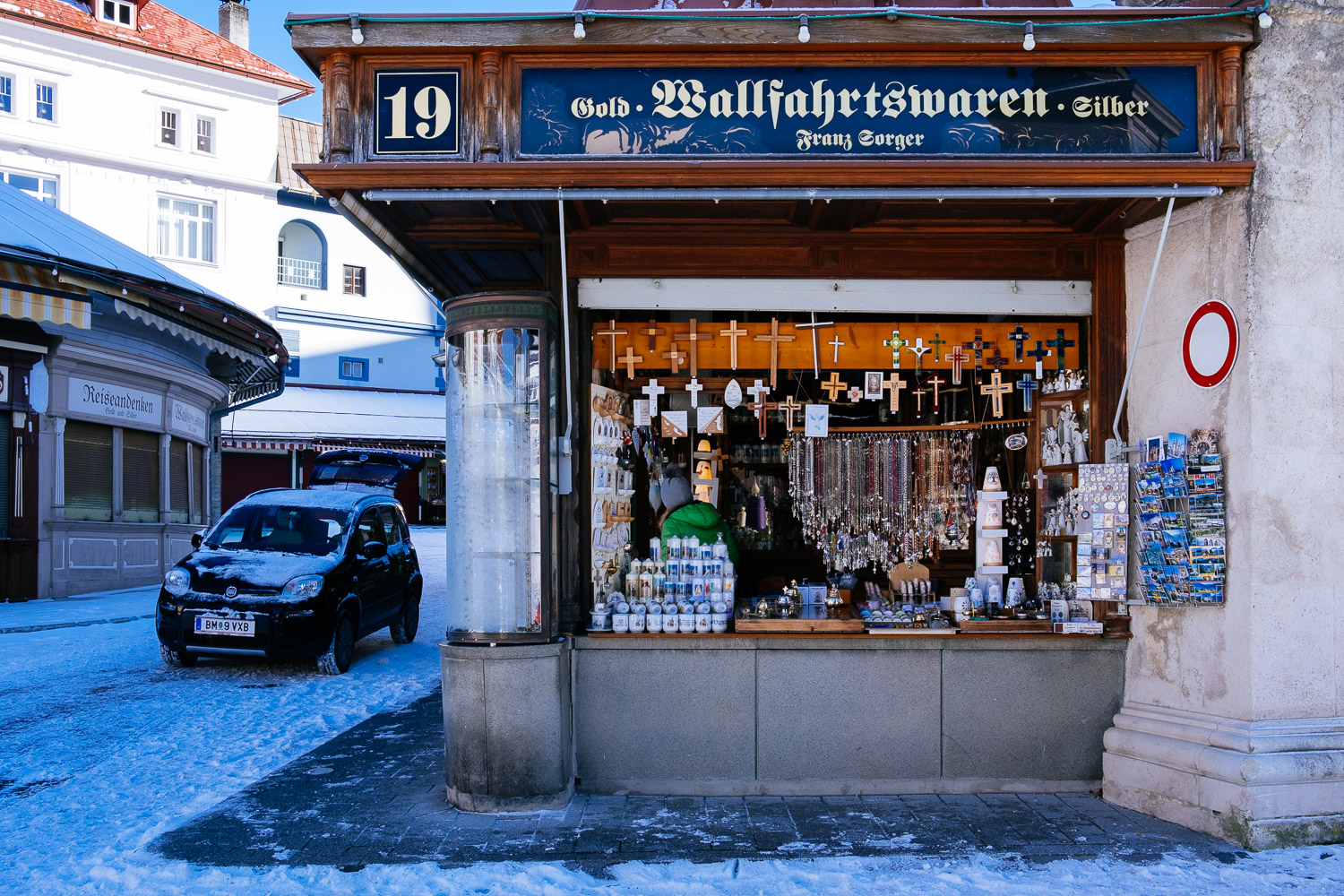 Because of Covid19 there were hardly any tourists, skiers or pilgrims in town. For a long time the place belonged to the locals again, almost. We come here every year in winter for a day trip but last winter we didn’t because there was a lock down and all restaurants were closed. Even though there were hardly any visitors two of the sales booths were open. It was still very quiet and we enjoyed that. I think it suits the place.