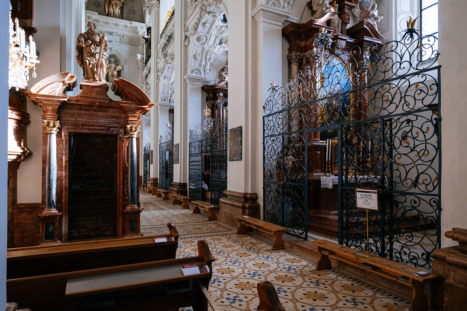The basilica looks beautiful inside even though it is not that big at all. On the outside I never liked it because the three towers always looked strange to me. The middle one is gothic and the outer two were added centuries later when the church went through a baroqueization.