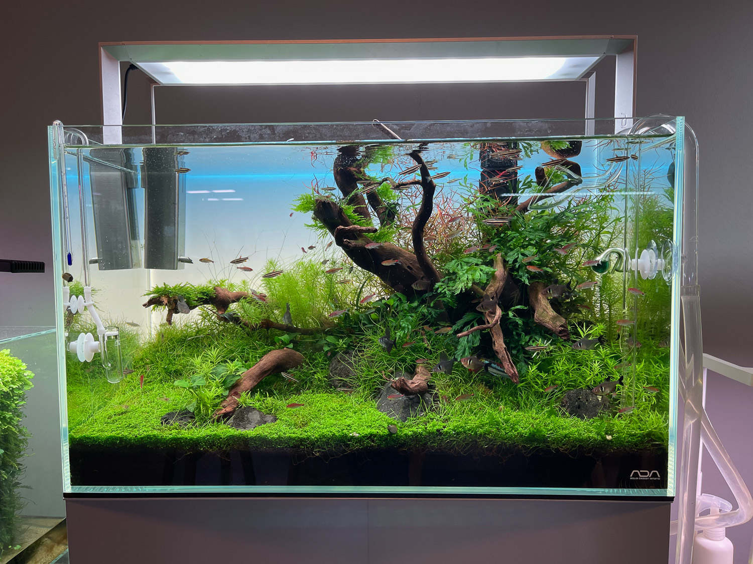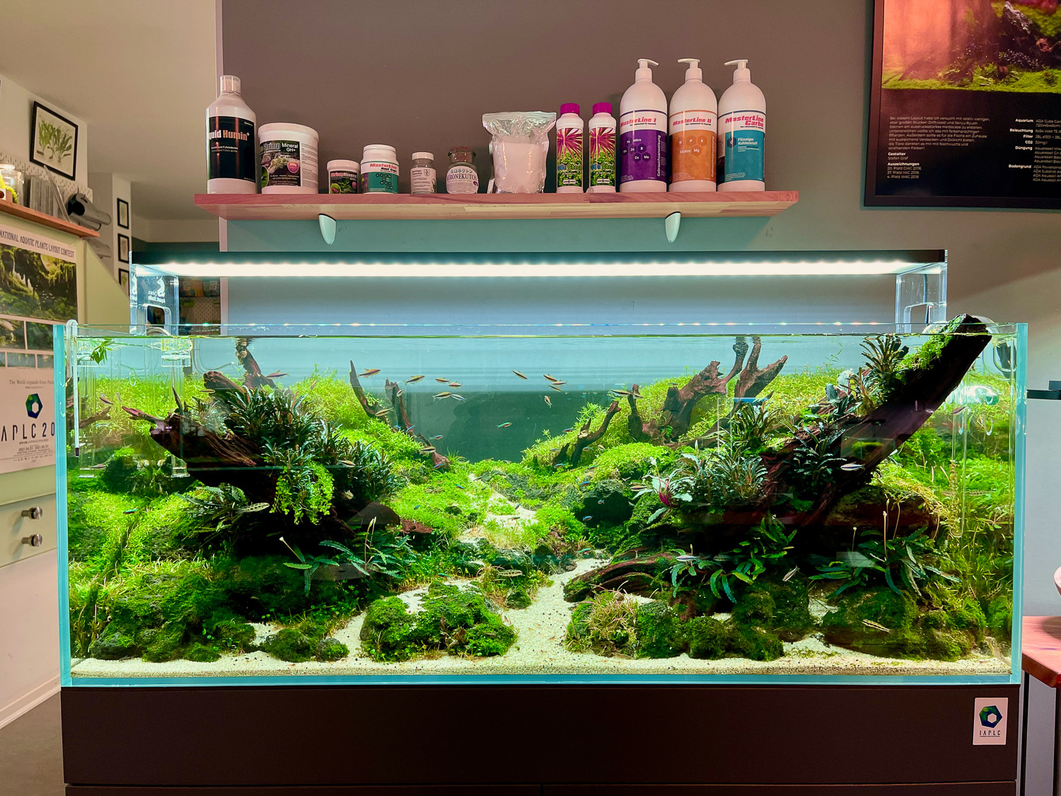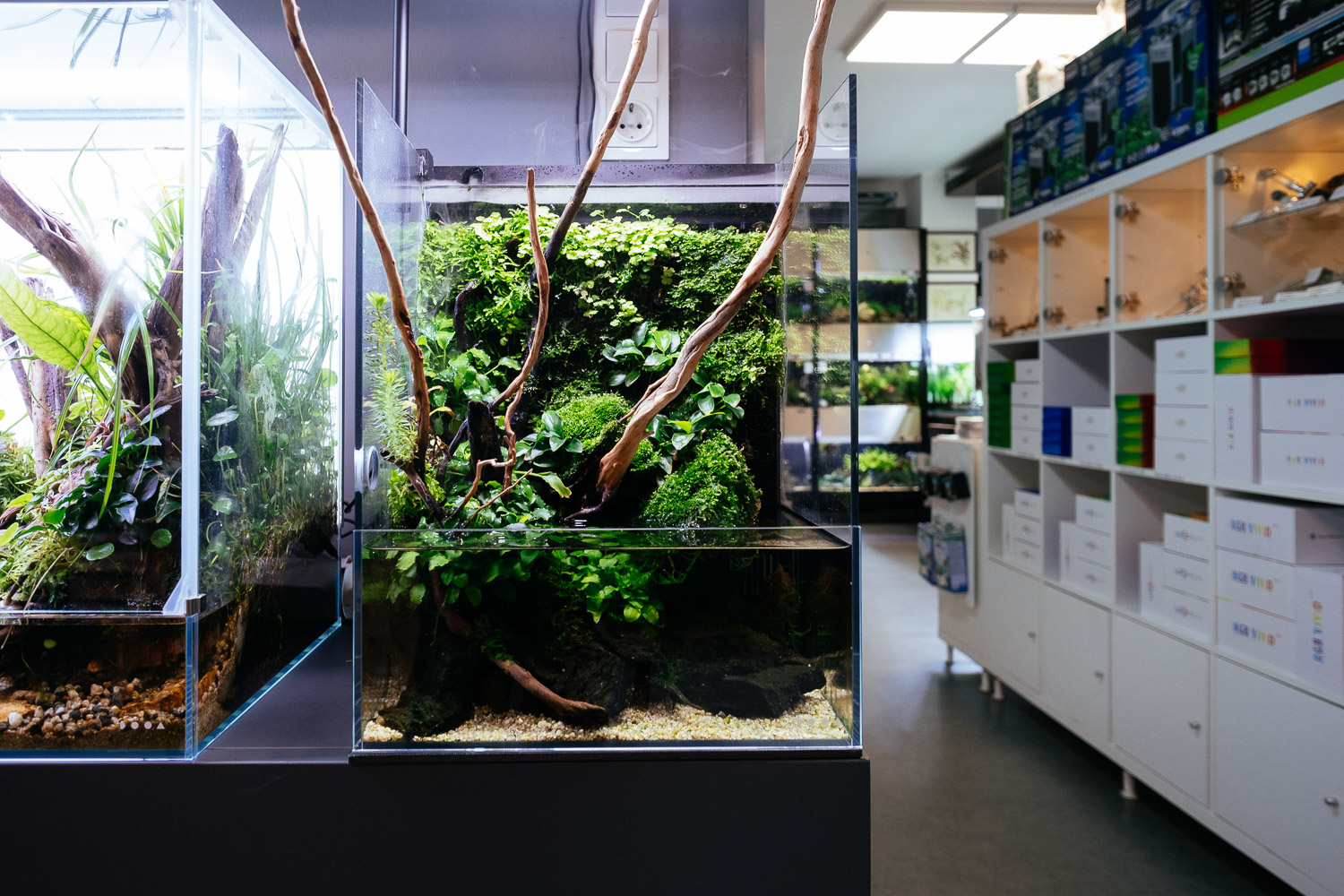 When we still lived in Vienna I bought an aquarium book which was very different. It was the book of ADA (Aqua Design Amano). The pictures of the fish tanks were fantastic. They looked completely different to what aquariums looked at that time and of course completely different to my own aquarium. Amano created under water landscapes that looked like a forest or a grassland or something out of a fantasy game. Now many years later I found out that there is a shop in Vienna right next to where we used to live that focuses on aquascaping and sells ADA fish tanks and equipment.