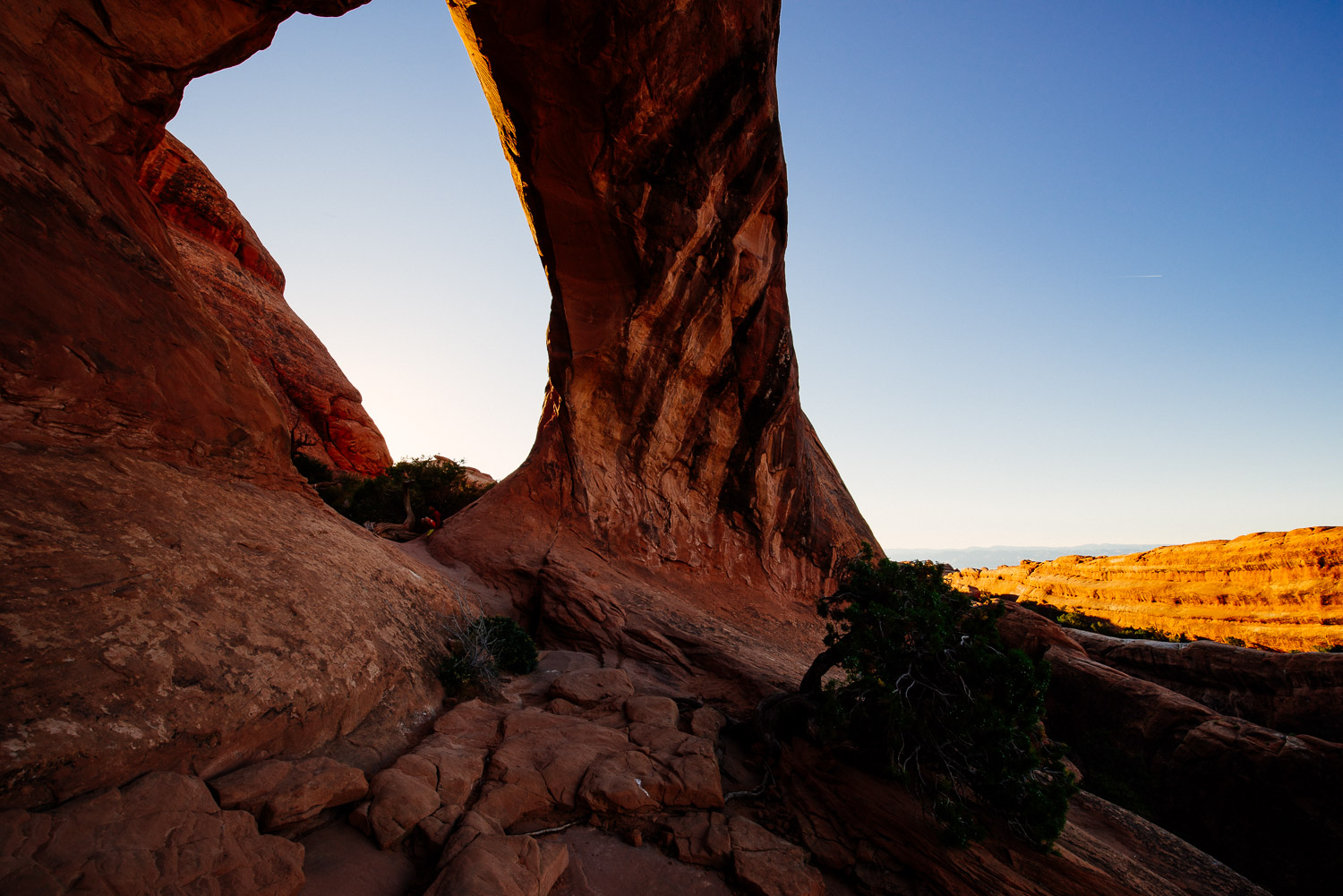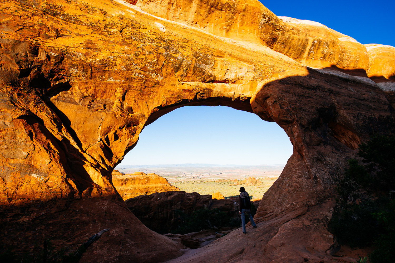 The light was magical and the view trough the higher arch was amazing. We chose this hike because the park website warned about the difficult hike to the Delicate Arch (the hike to Delicate Arch is not difficult at all, we did it in 2018) but I have no regrets. This was just magical and we had this hike and the view just for ourselves. The same can’t be said about the Delicate Arch which of course is still a must see. But this here was quiet and peaceful and one of the most beautiful hikes in my life.