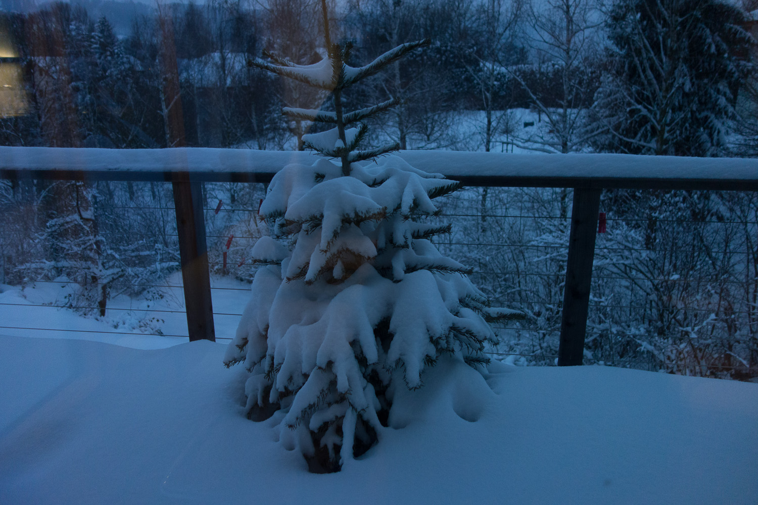 After the 8th of January we put our christmas tree away. But instead of cutting it down I placed it on our patio. When the snow came it looked great. Even better than he looked when he was inside with all the light chains and glitter.