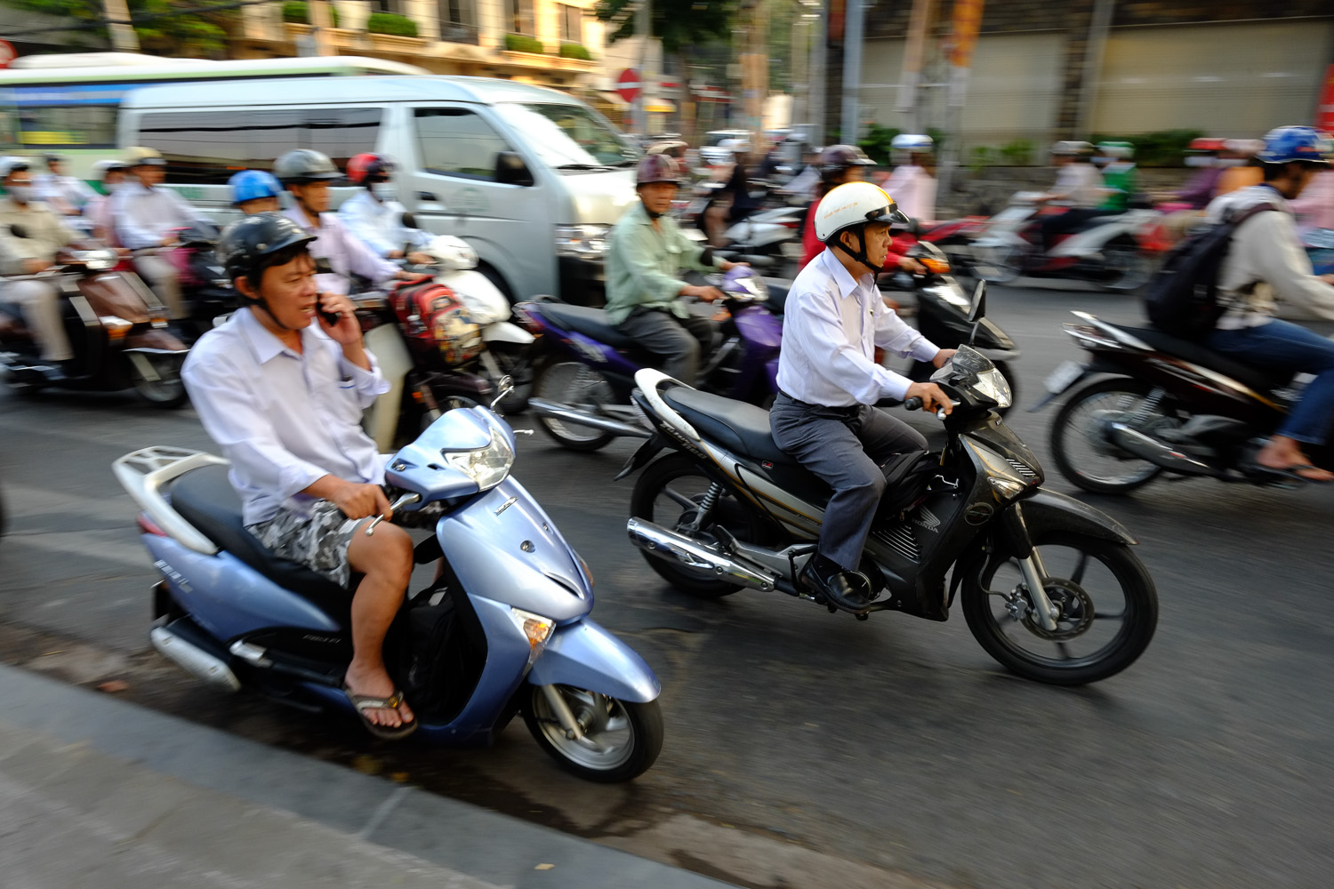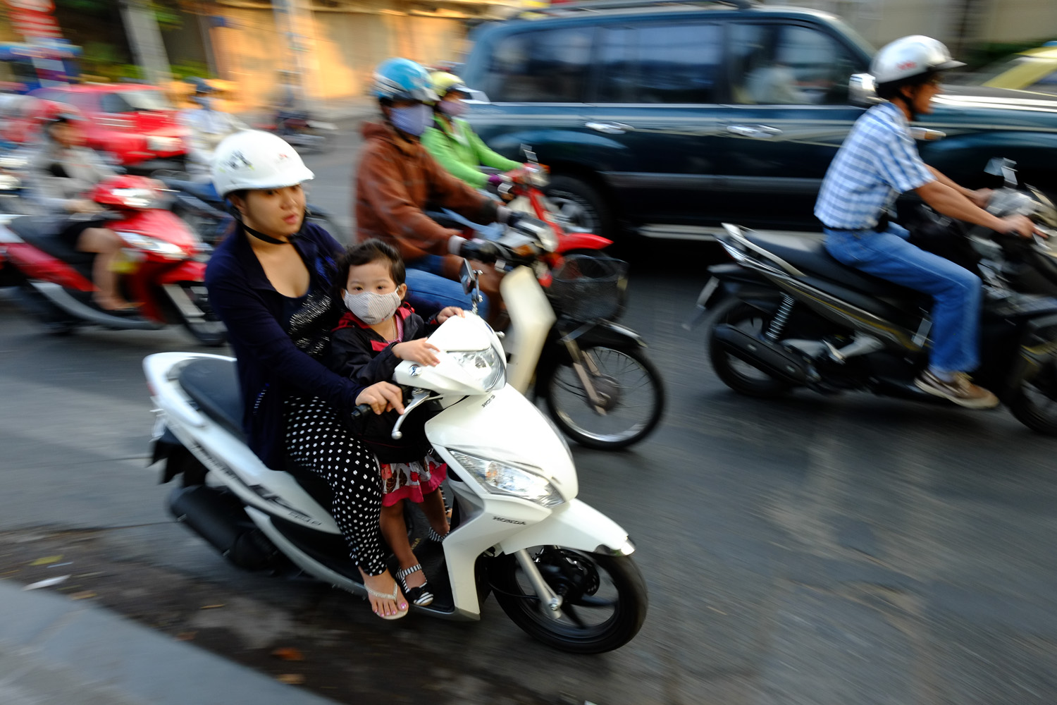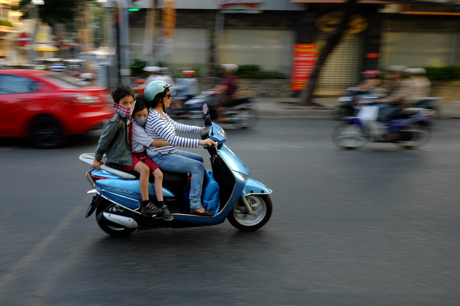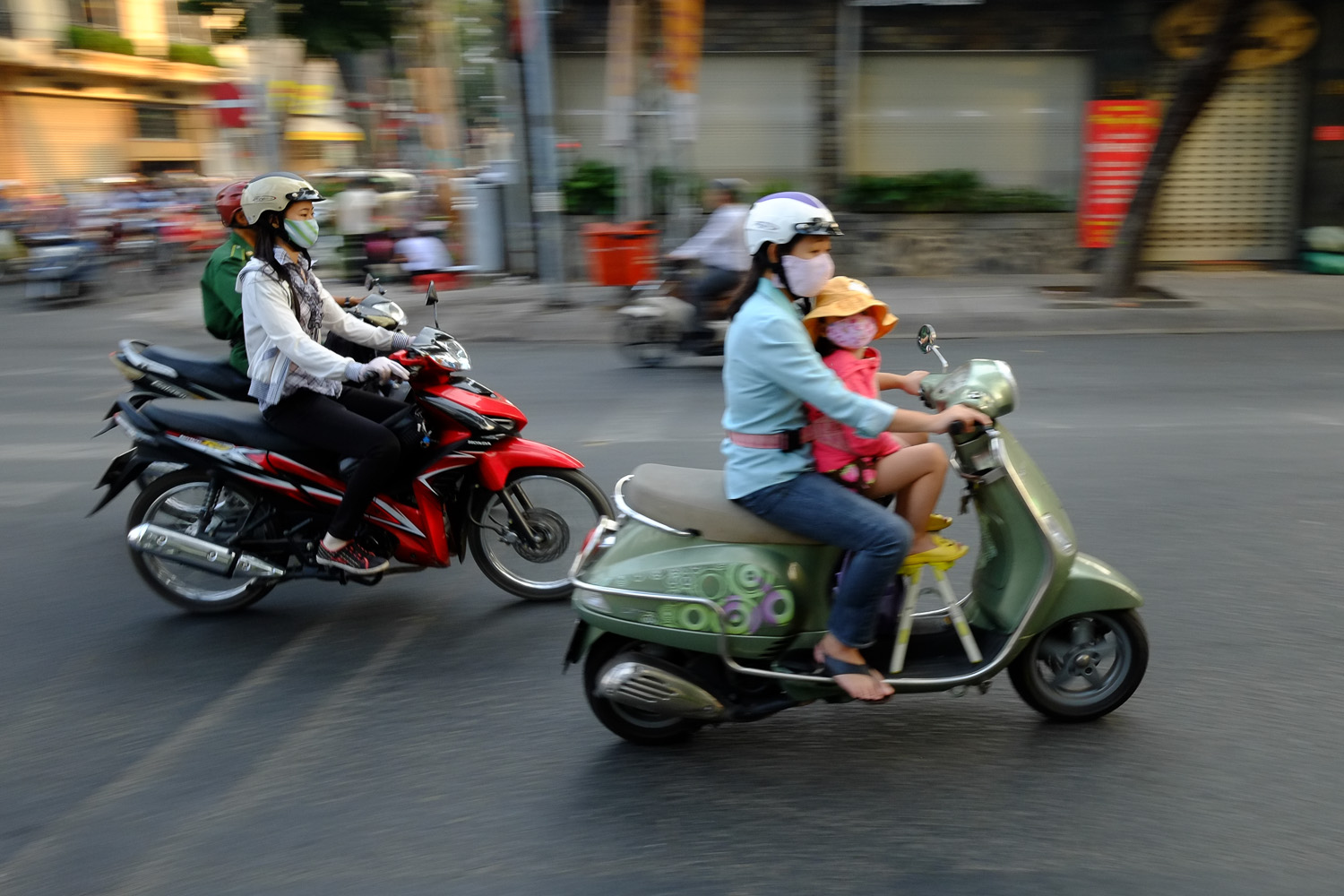 Before breakfast I went out of the hotel and start shooting the endless stream of people on motorbikes passing by. I always wanted to take these pictures. To give them a more dynamic look I decided to use a longer shutter speed of 1/60s (I changed to 1/125s later). To avoid AF I shot in M-Mode, chose a aperture of f8 and set focus manually.