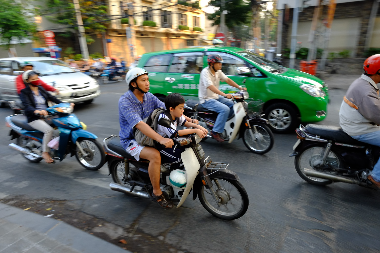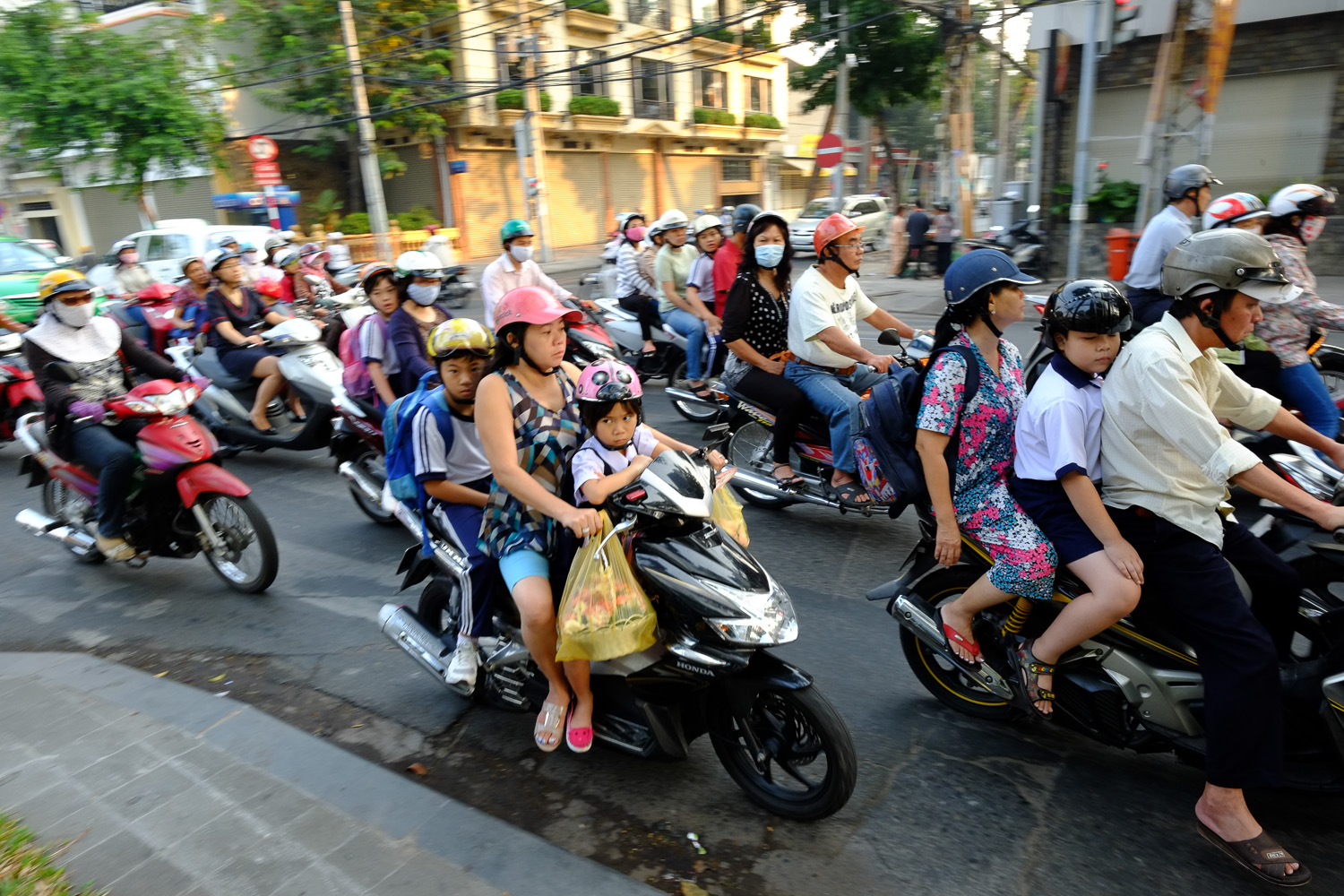 Sometimes I could not believe my eyes. I saw families on one bike. 2 adults plus 2 kids. I saw people eating their breakfast or kids sleeping in between their father and mother. Everybody seems totally relaxed.