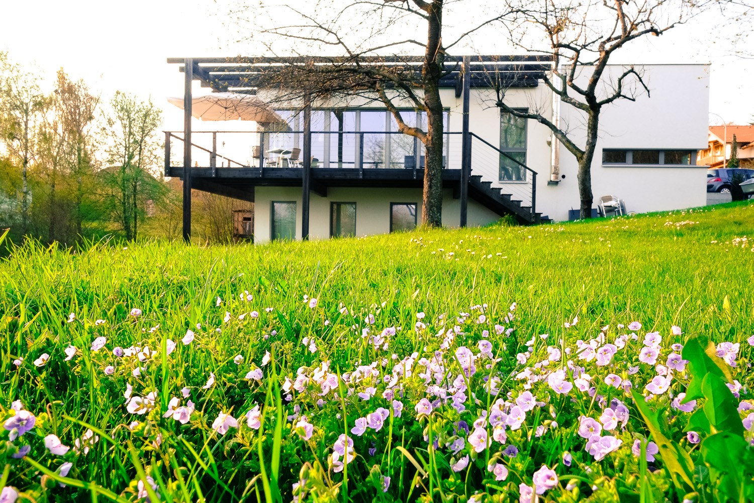 These images are more than a month old. They show our garden before the first cut of the grass. I love the garden in spring. The grass looks wonderful and is full of small wild flowers. Before we built our house we lived in the middle of Vienna. We could not tell the season when we looked out of the window. Now we can.