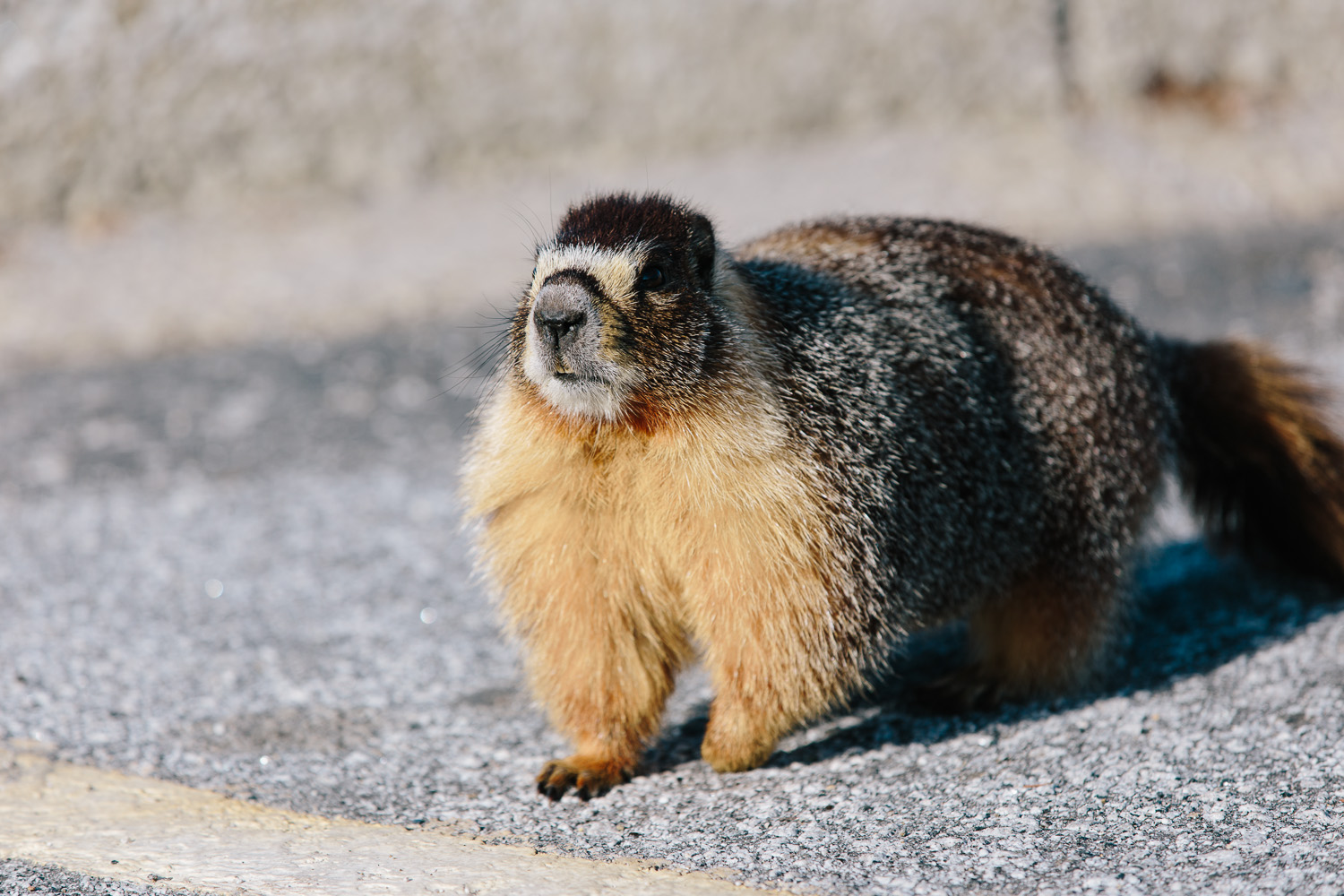 This little fellow I found at the parking lot where we climbed the little hill. When I were back at the car I saw two marmots. The first images I took from some distance but the marmots were used to people. They looked beautiful in their winter coat. A last sign of winter.