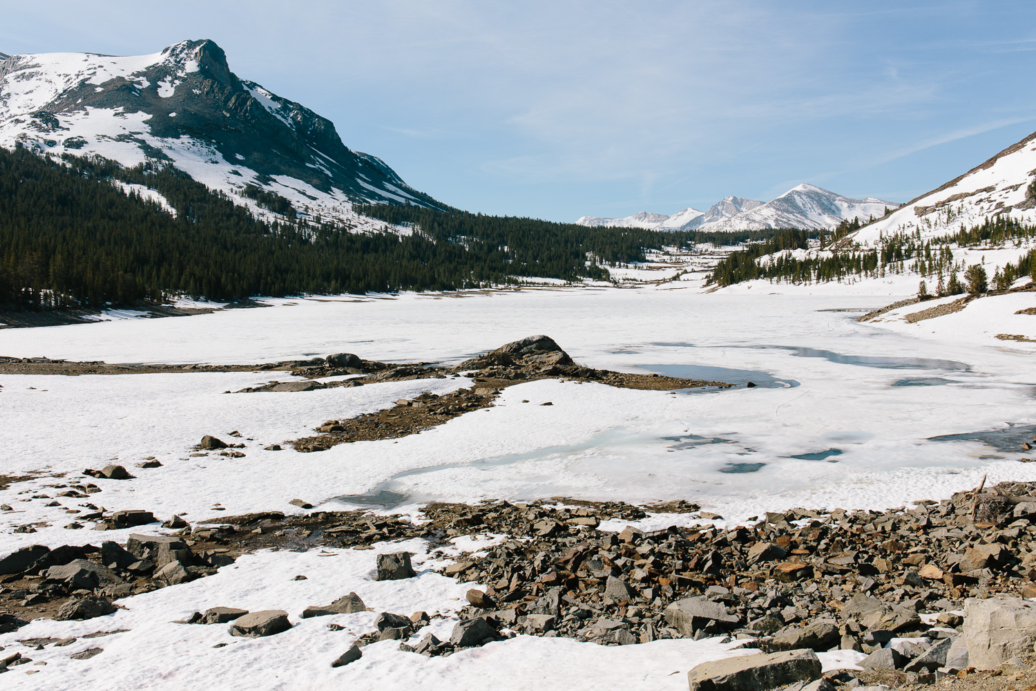 These are not the best images I took when I was in California but they are needed to tell the story of the trip. We crossed Tioga pass ( almost 10.000 feet / or over 3.000 m ) on May 12th. It’s obvious that not long ago the pass was still closed because of snow. May is great to visit the south west of the USA. Maybe April is even better to see the desert bloom but it would be most likely too early to cross this pass. But then June would be better for the meadows here. There was still lots of snow and even a partly frozen lake. Too early for blossoms and squirrels so we moved on.