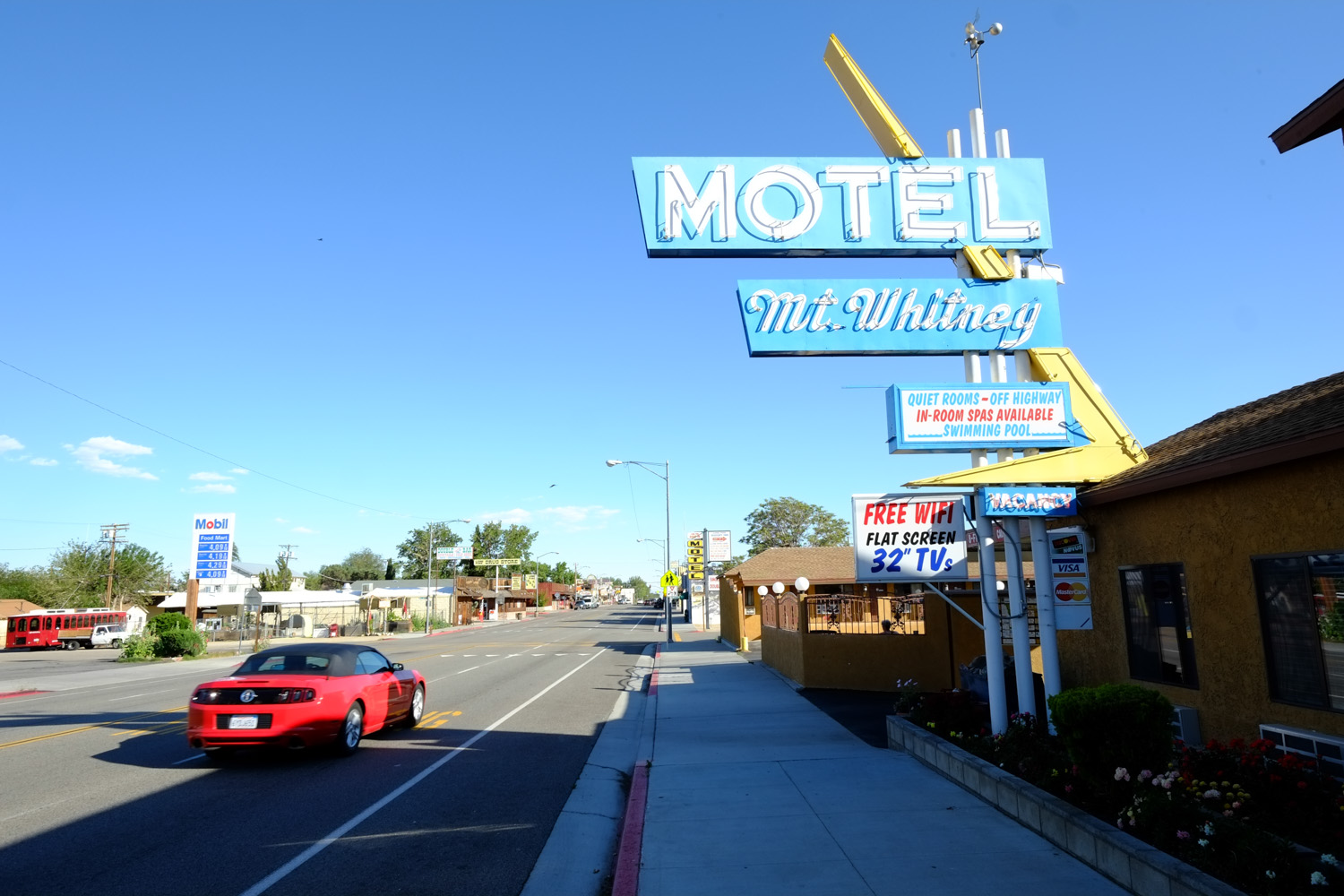 The only issue is that it is really wide for the USA. What I’m trying to say is that you can’t shoot the buildings on the other side of the road because the roads with their very wide lanes ( two in each direction ) and parking lanes on each side are really massive. Even the road through a small town like Lone Pine looks like our Autobahn.