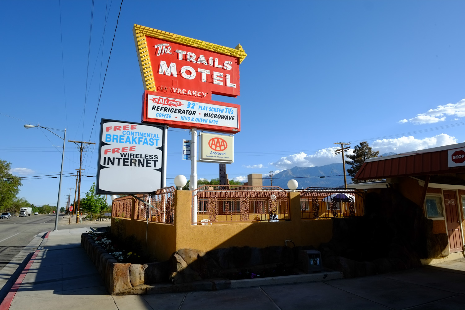 In the afternoon we finally reached Lone Pine. A small town in the middle of nowhere that looks a like an open air museum with all it’s wooden saloons, motels and shops. And I thought it was the time to shoot with my Fuji XP1 instead of the Canon 6D because currently my widest lens is the 14mm on the Fuji. I don’t have a super wide angle zoom for my Canon and the 14mm ( 21 in full frame terms ) is just perfect.
