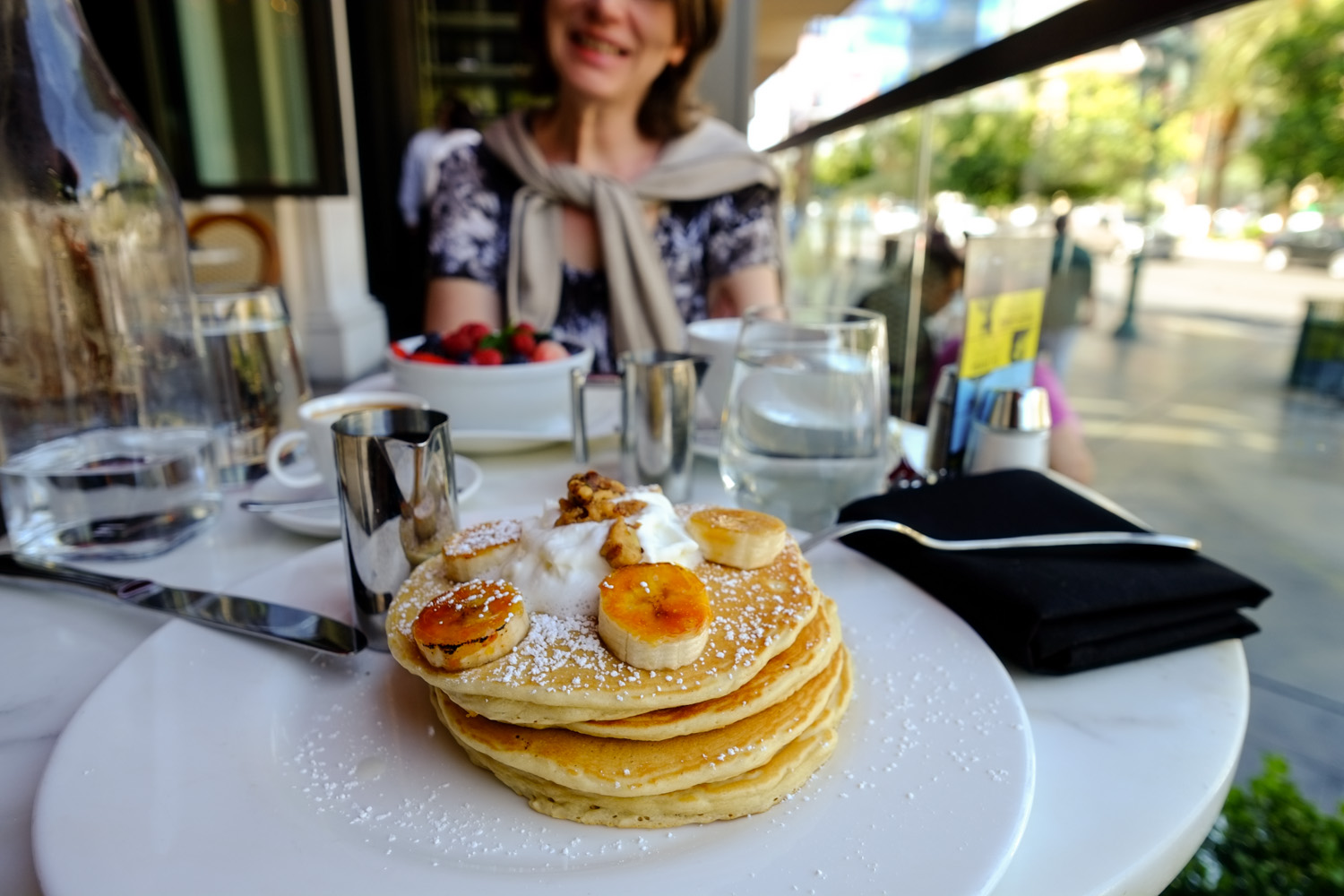 Above image shows my “healthy” breakfast: banana walnut pancakes with maple sirup. My beautiful but smart wife wife went for granola with berries. But who cares! We life only once. If I don’t stop to eat like that life might be shorter than expected. The pancakes were great but I did not finish. It simply was too much.