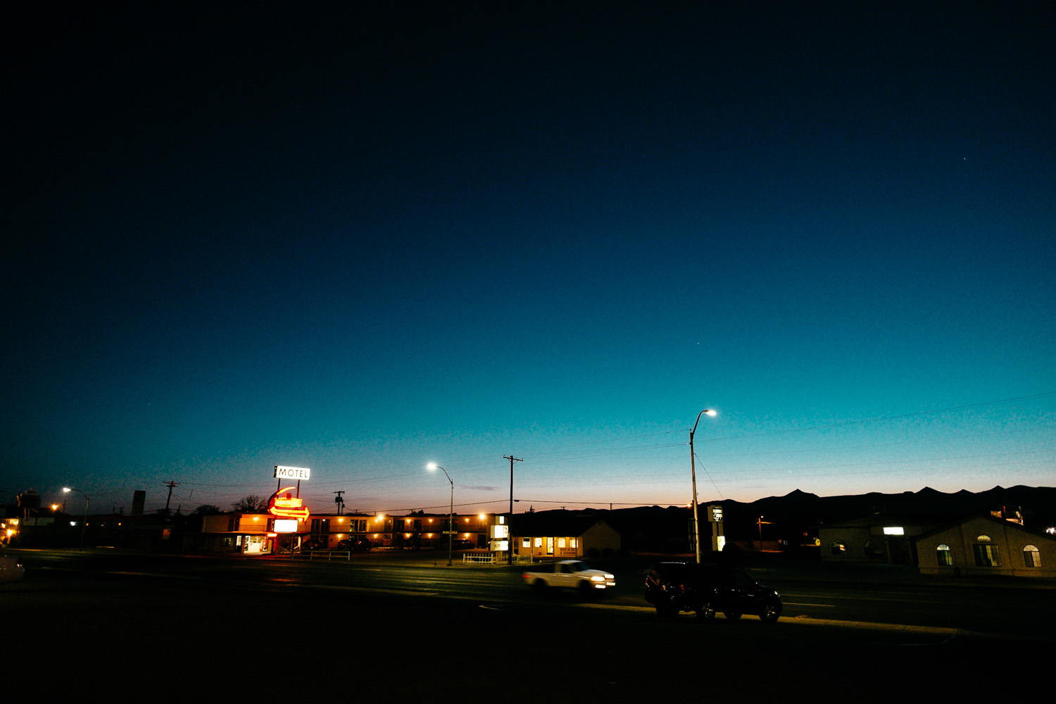 The place where I took these images is Kingman/Arizona. I liked the late blue hour sky and the motel sign. When I framed the shot I saw a car coming. An old Lincoln? or similar. I pushed the knob and knew I had the perfect shot. I love these cars.