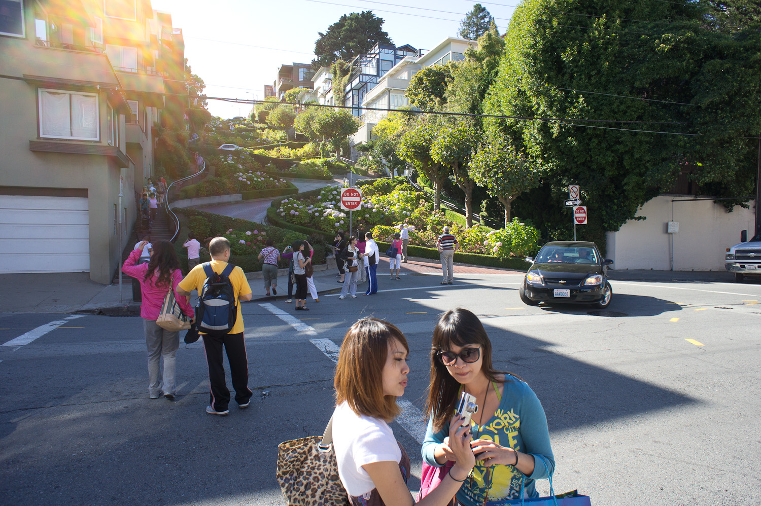 The last one shows the famous Lombard Street. The street was so steep ( 27% ) that in 1923 they decided to make it an one way serpentine road because it was too much for most cars. Now that I googled for this data I found out that there is an even steeper street just two blocks away. Too bad I haven’t known that when I was there. So here is a travel tipp: If you go to see the Lombard street take a look at the Filbert Street as well. It’s 31% and acts as a kind of jumping hill in movies like “Bullitt”