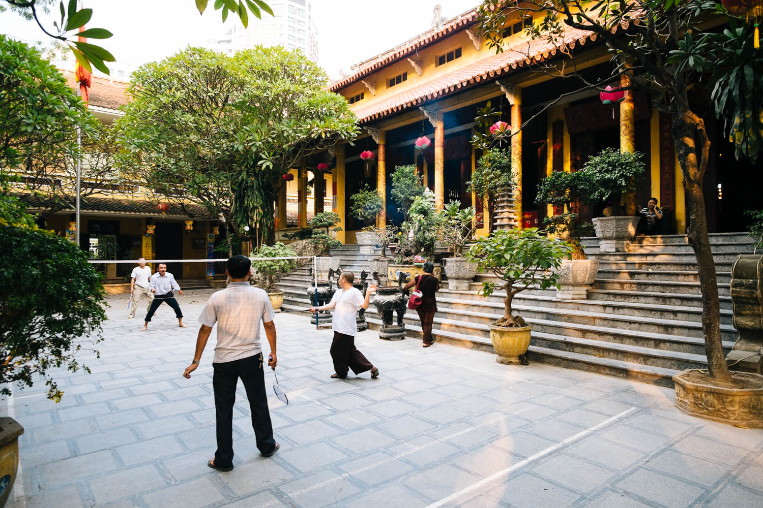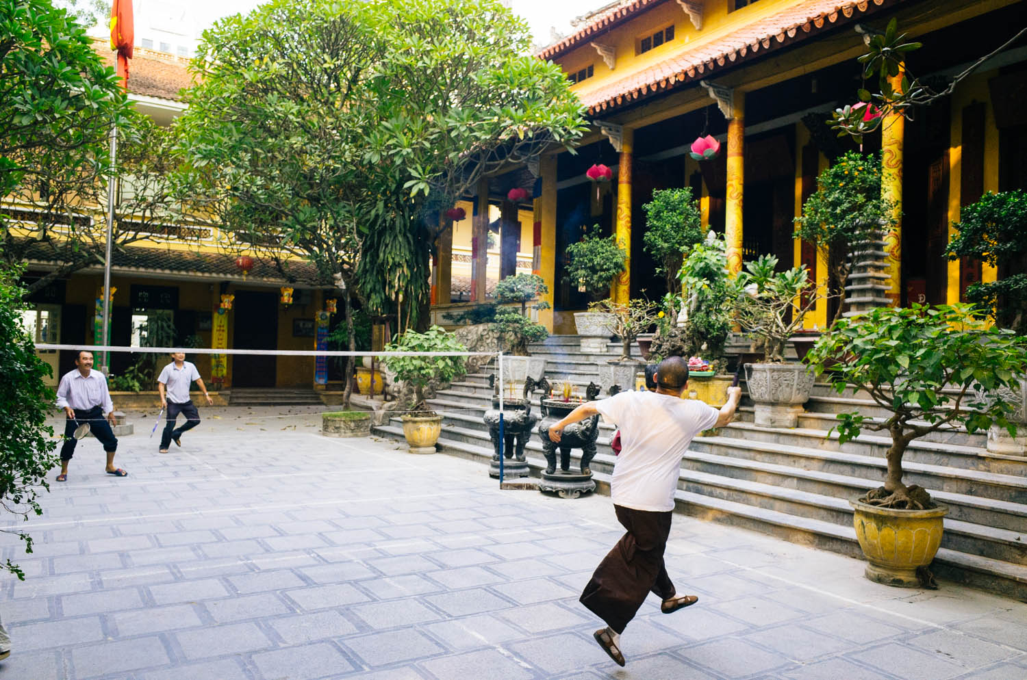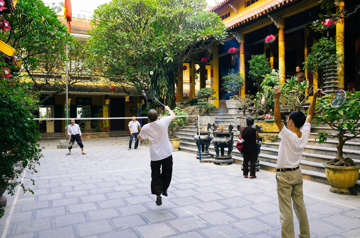 When I entered this pagoda I did not expect to find a Badminton court in front of it. And the best thing was that there was a game taking place and the guy with the nice trousers seemed to be a real expert of the game. In none of the above images his feet touch the ground!