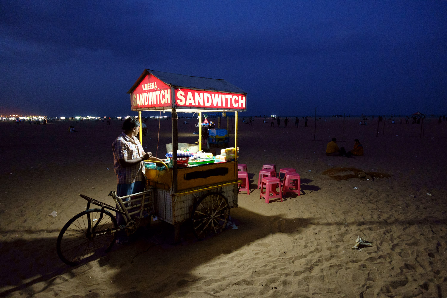 After the temple we went to the sea or to be more precise to the Bay of Bengal. It was too late for a sunset at the sea but I think there is no chance that the sun sets into the sea. I’m on the east coast of India. The only chance to get the sun and the sea in one frame is to take an image of the sunrise. But there is no more sunrise at the coast. Tomorrow I have an early morning flight to Hyderabad.