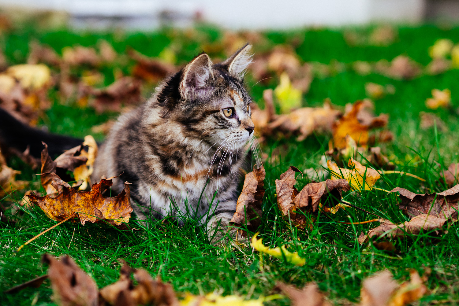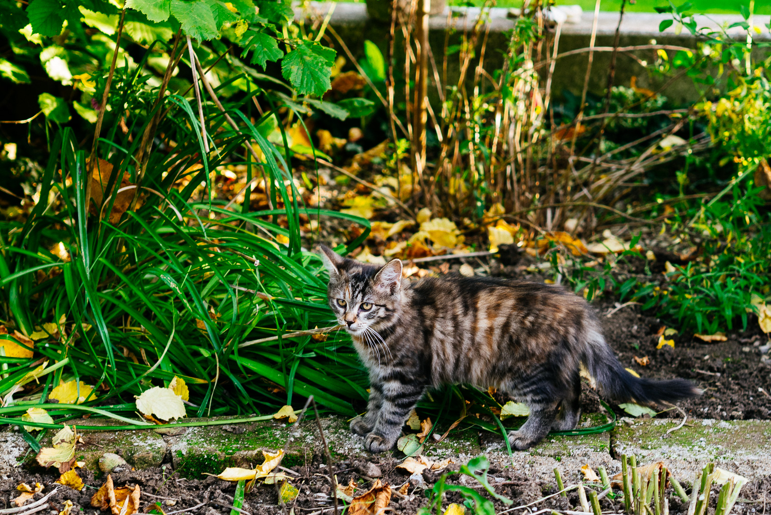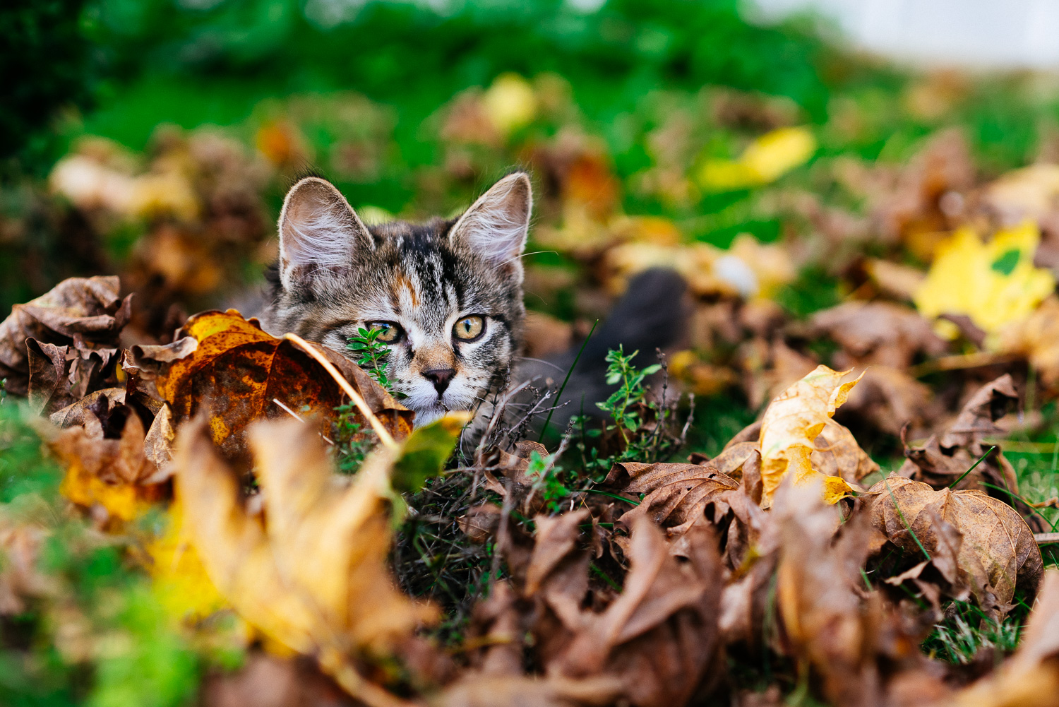 Last but not least my favorite shot of the day. Yes I know it is not sharp and the framing is a little tight but I love the photo. I love it because of the light and the beautiful autumn glow in the background. I love it because of how focused this little cat watches a bug flying above her head. She just killed her first fly in the morning so the picture may not be as peaceful as it seems.