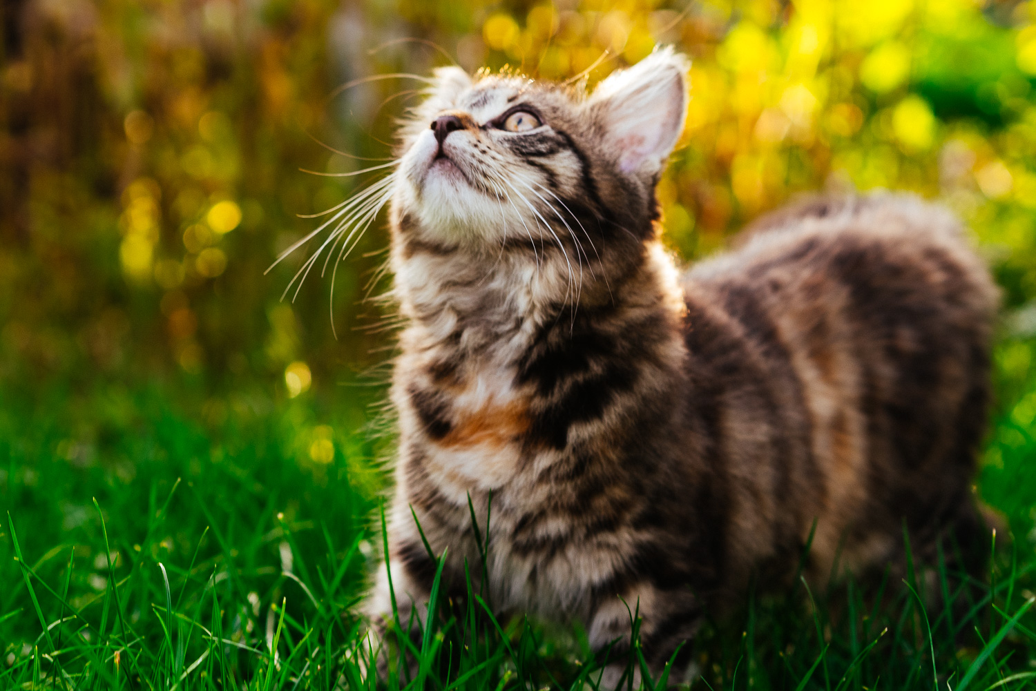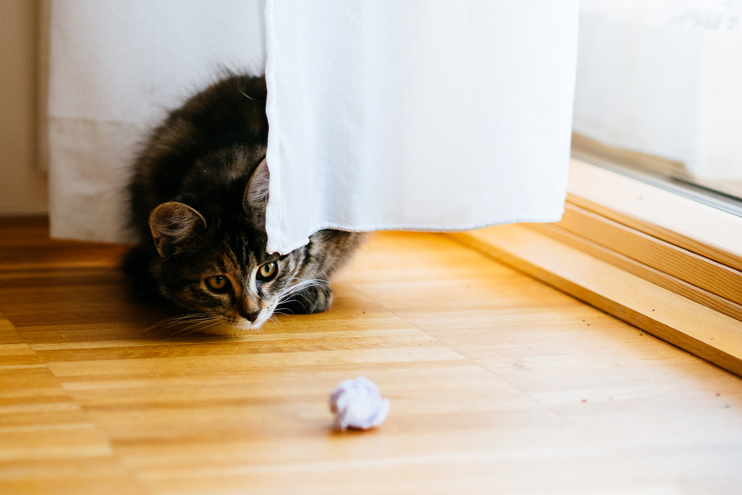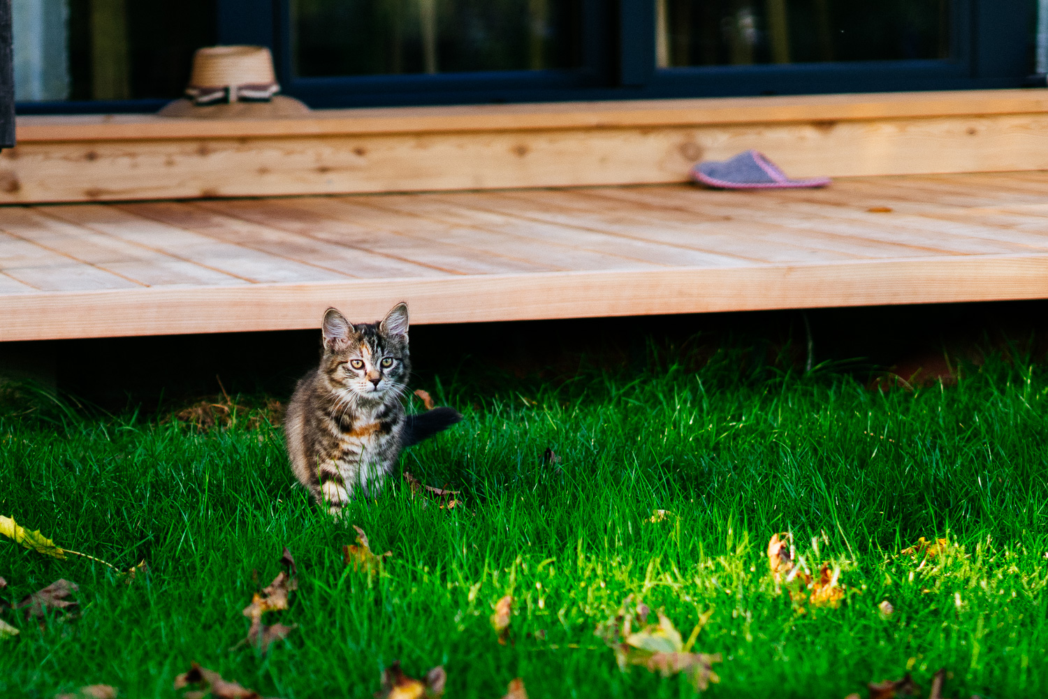 Last but not least my favorite shot of the day. Yes I know it is not sharp and the framing is a little tight but I love the photo. I love it because of the light and the beautiful autumn glow in the background. I love it because of how focused this little cat watches a bug flying above her head. She just killed her first fly in the morning so the picture may not be as peaceful as it seems.