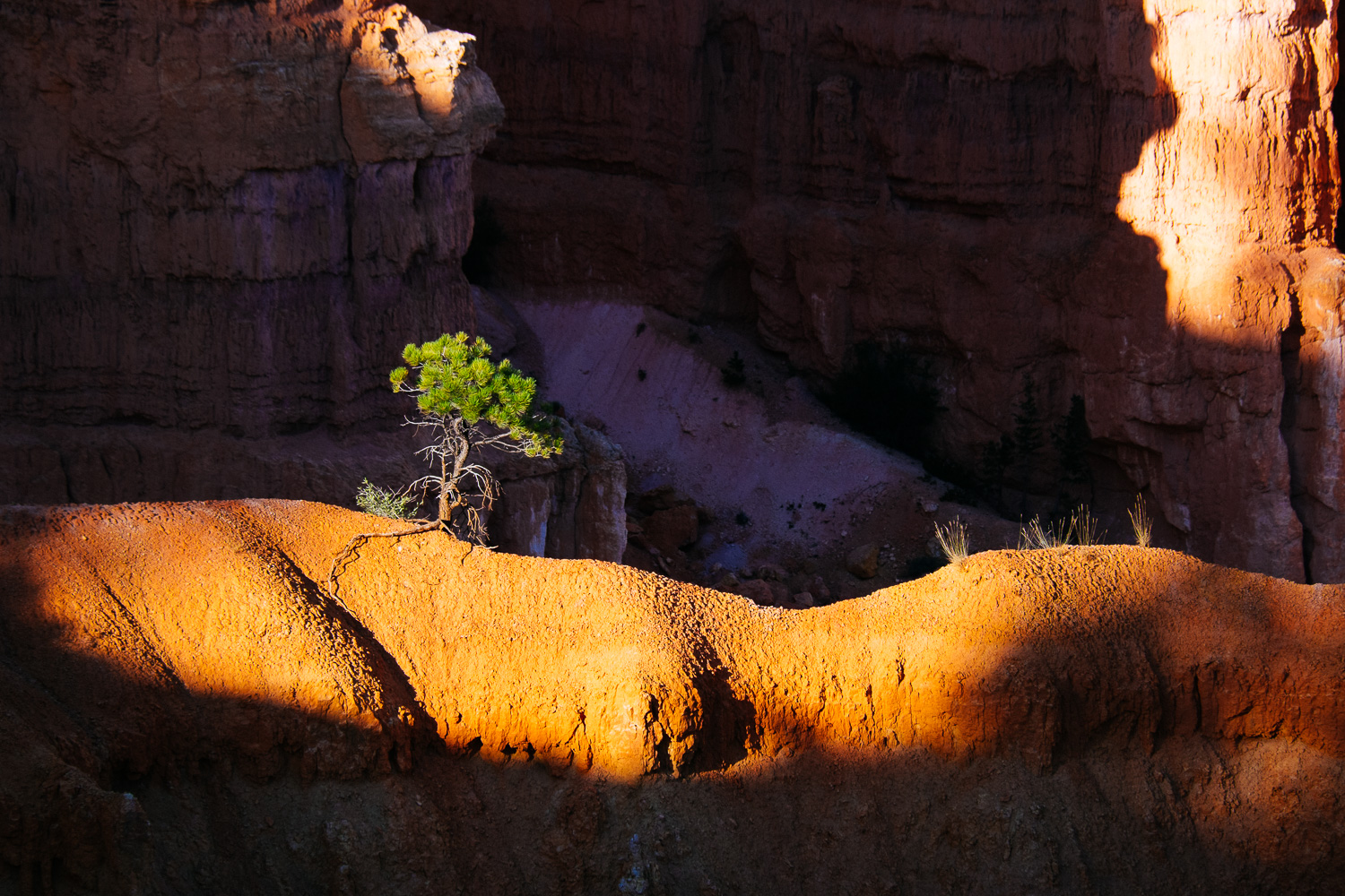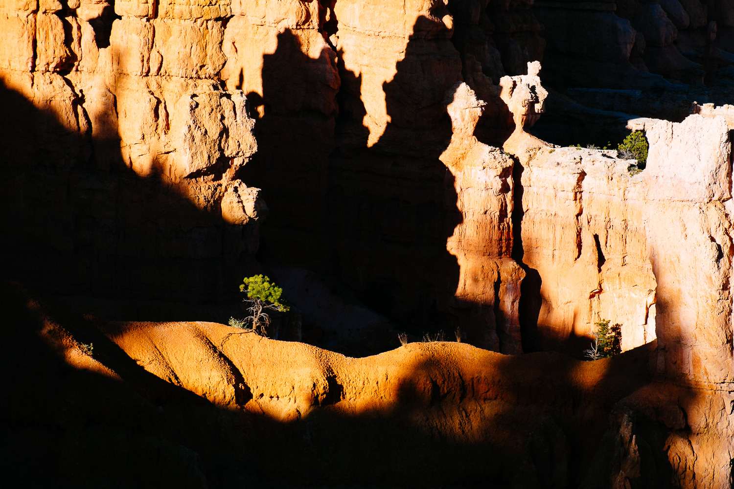 The flat light before sunset is best. It creates beautiful contrast between the sunlit spots and deep shadows. A lot of visitors leave too early to experience the change in the landscape because they need to go to their next destination. We decided to stay in a hotel close to the Canyon to be able to spend sunset and sunrise here.