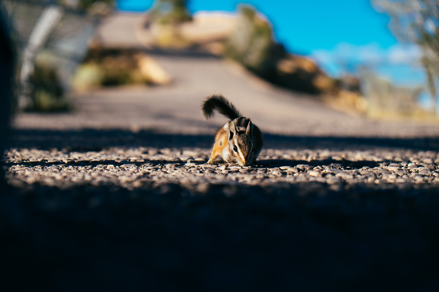 The air was fresh and there was a strong wind blowing but I didn’t want to go back to the car. The light was already changing. So I stayed there and continued shooting. When I tried to shoot a panorama a chipmunk approached me. With nothing but the kit lens attached I tried to catch the little fellow. This was the best shot. The XF 18-55 kit lens shot wide open at 55mm. Not too bad if you ask me. Even the Bokeh is pleasing. The tilt screen helped with the low viewpoint.