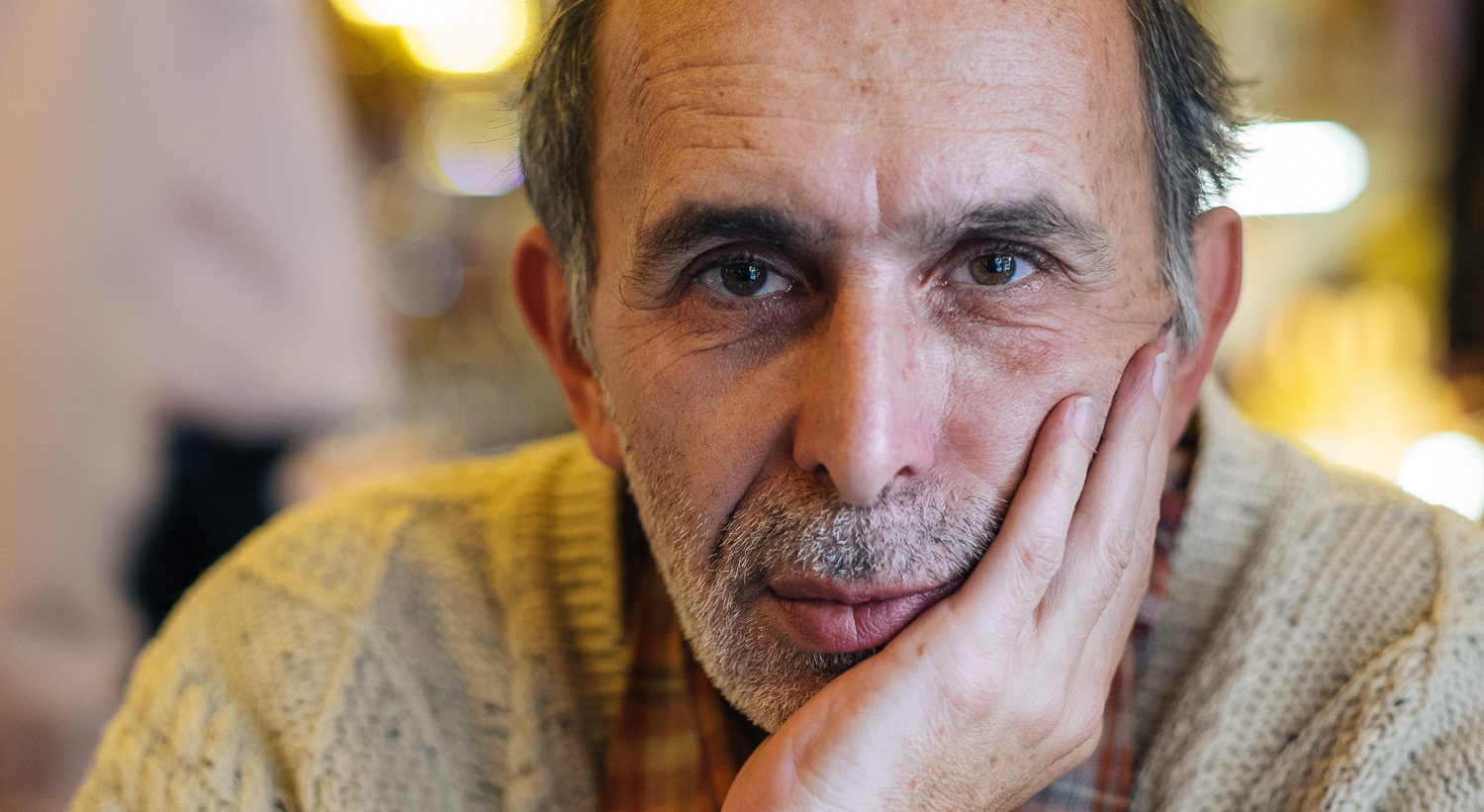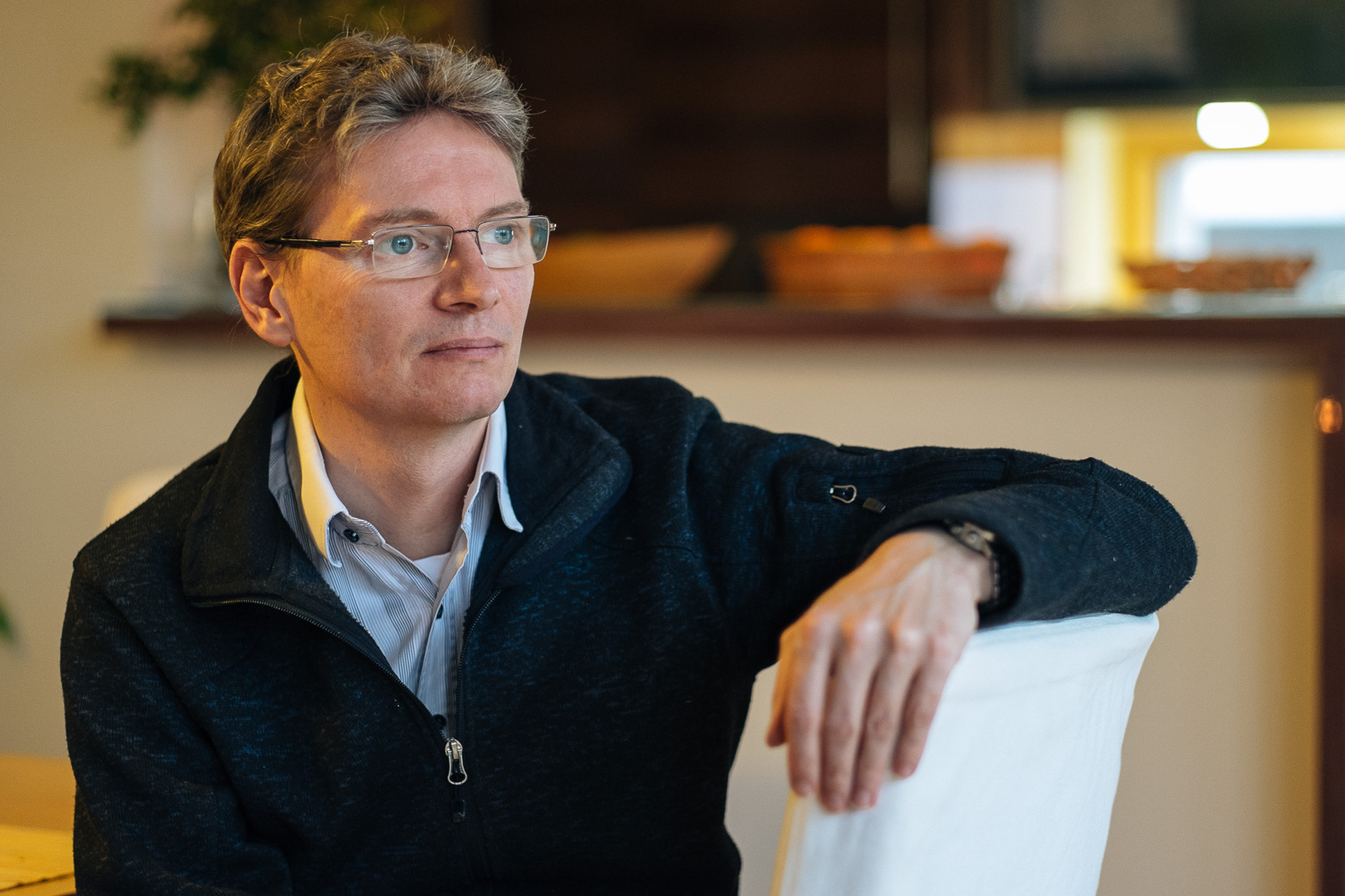 That’s even more true when I’m in poor shape like in the picture above but I love the shot. My wife took it after we had a winter walk through the zoo. I cropped the picture to cut out the bad hair caused by my hat and desaturated the image to avoid the frozen skin look. I set up the camera for my wife: aperture to f2, Auto ISO to 1/125s minimum shutter speed and AF to face detection. The reason I love the shot is the soft light from the window and the great, nicely blurred background. But most of all because I look relaxed.