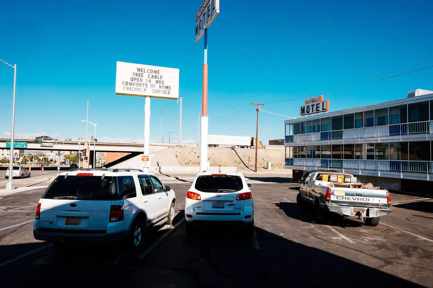 When we reached the place I parked my car right in front of it which was a big mistake. The Buick Enclave is neither cool nor old enough to fit the motel. In my favorite shot I hid it behind the old Chevi truck which was the perfect match for the location. As was the old white van. It’s a shame that you can’t rent a cool car from the seventies. I would scarify the luxury of a modern car for the chance to have an interesting subject for my pictures.