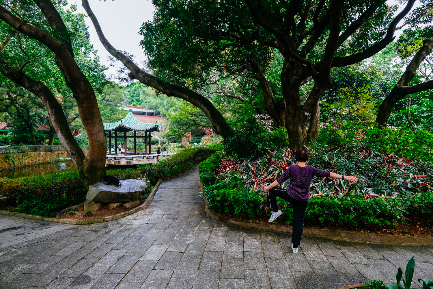 The old men reading the papers in between the comic heroes, the women doing gymnastics in the park, the friendly guard with the pump gun and the gentleman below. I just started but I already loved Hongkong.