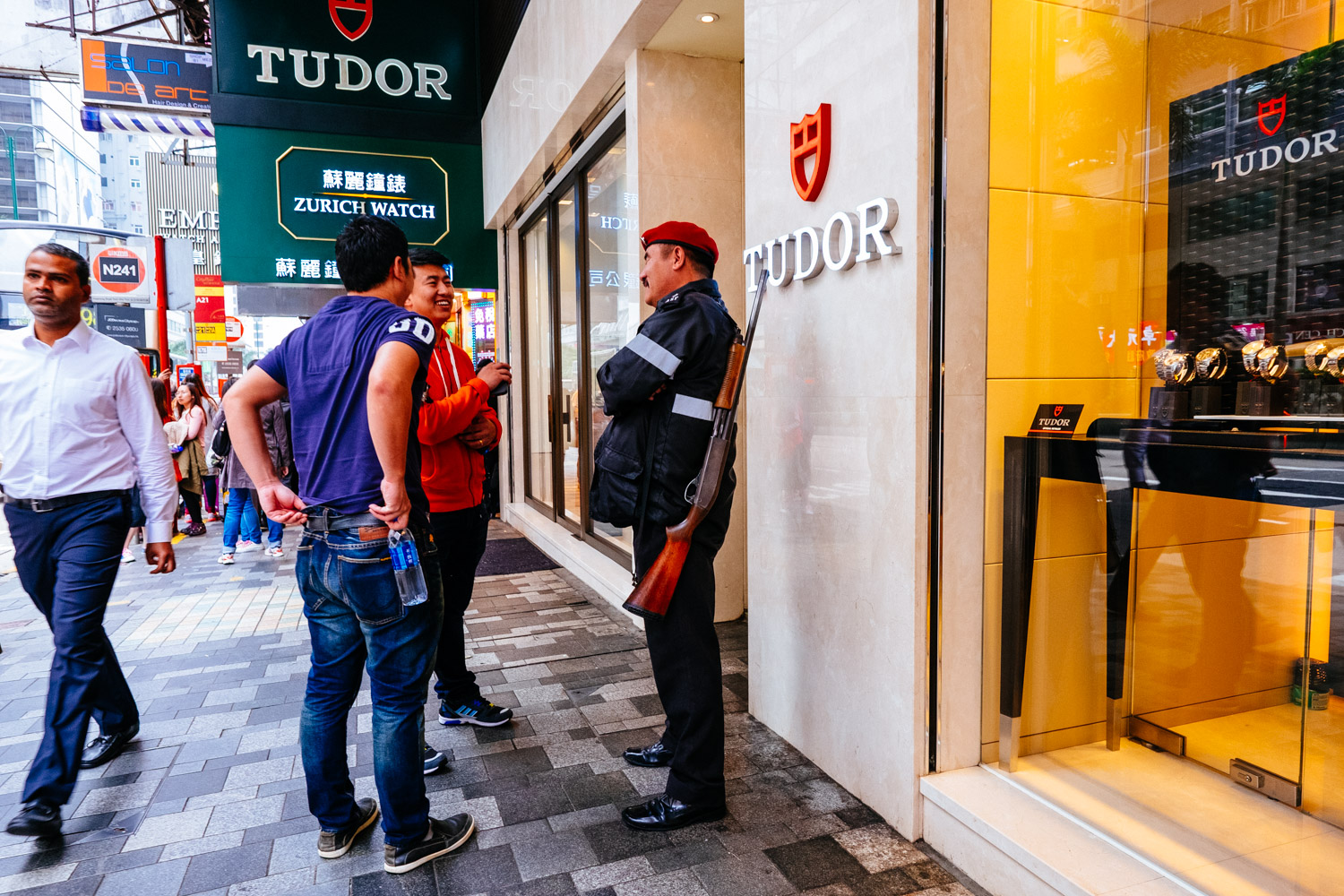 Or the one of the lady in her morning work out in the surprisingly peaceful park. I loved the way the park ends in a busy road again and of course the smiling guard in front of the watch store with his pump gun chatting with some passers-by. It seemed to me that Hongkong is all about contrasts.